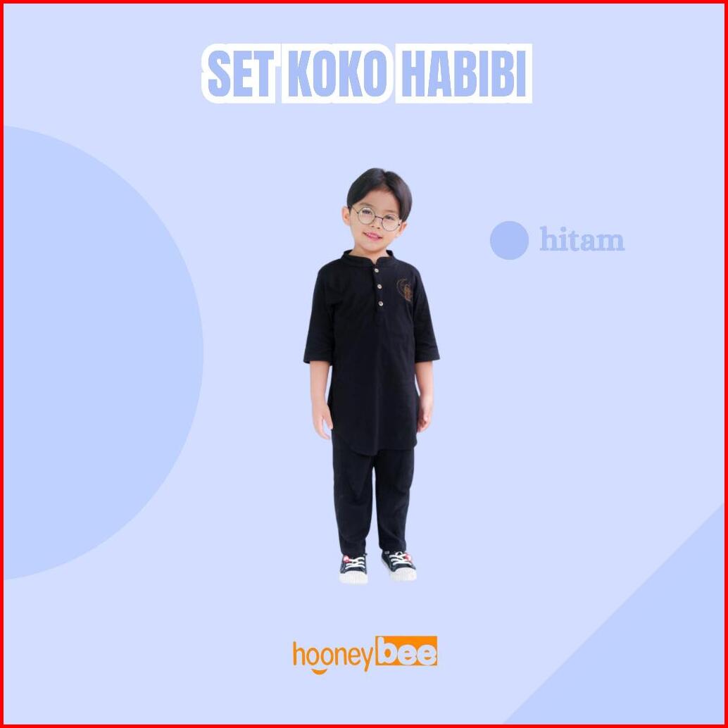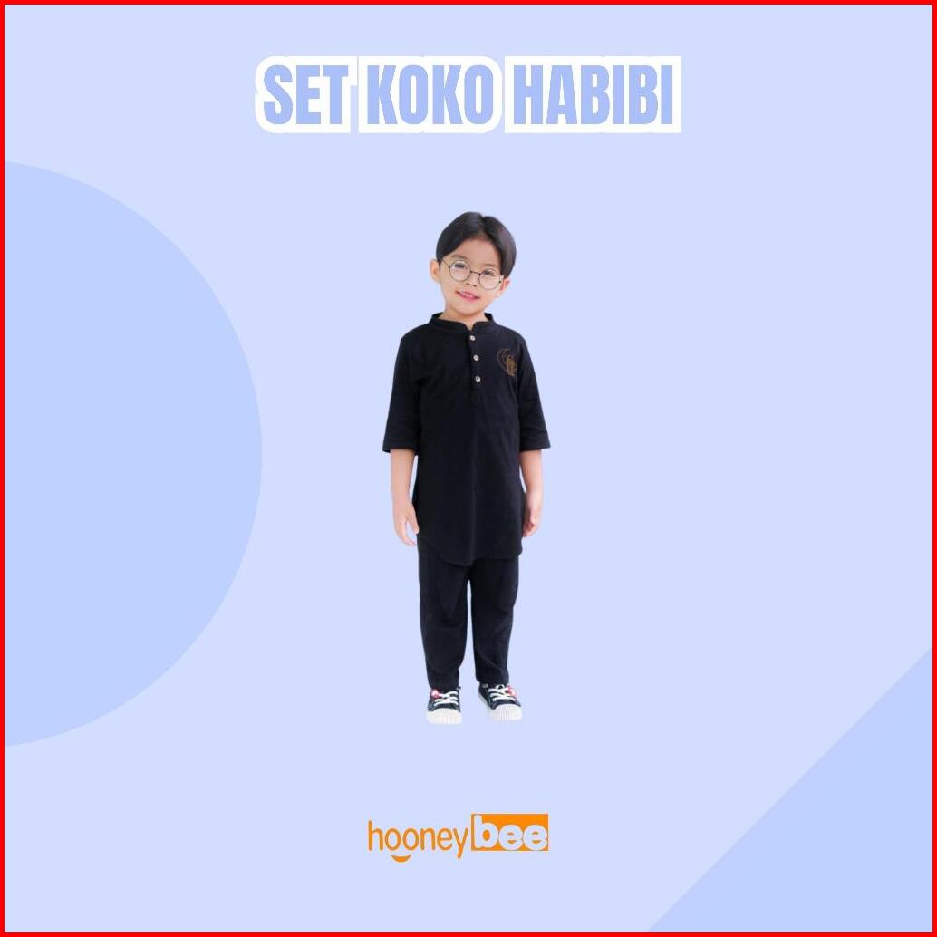 Setelan Koko Anak Habibi Junior Hooneybee Warna Hitam Size 2-10 Tahun