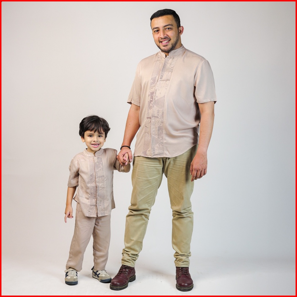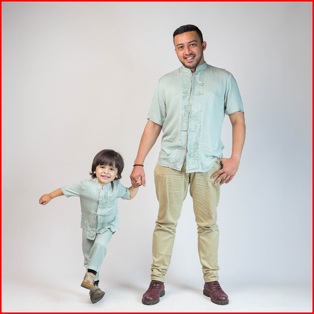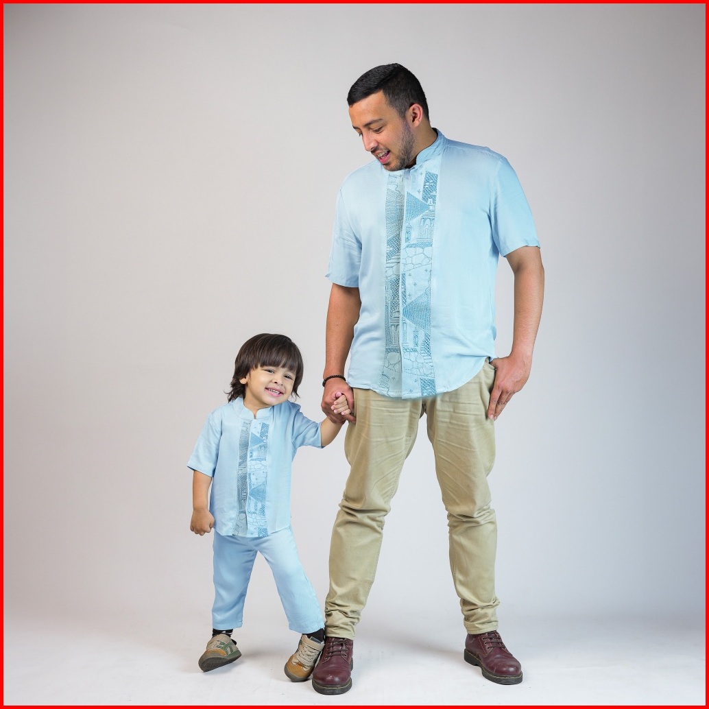 Hellomini 2-11t Abiyan Raya Koko Kembar Ayah Anak Katun Bordir Baju Koko Anak Laki Laki Hmn19