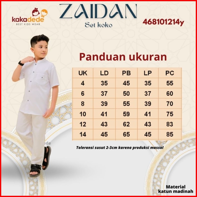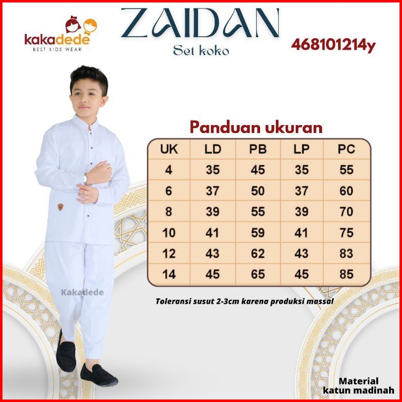 Setelan Baju Koko Putih Anak Laki Laki Lengan Panjang Pendek Kakadede