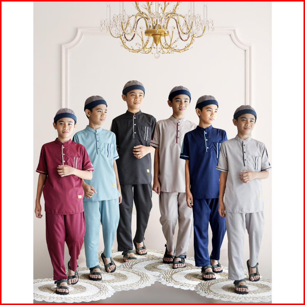 Baju Koko Setelan Anak Laki Laki- Kemko Set Anak - Setelan Muslim Anak Laki Laki Usia 8 - 16 Tahun