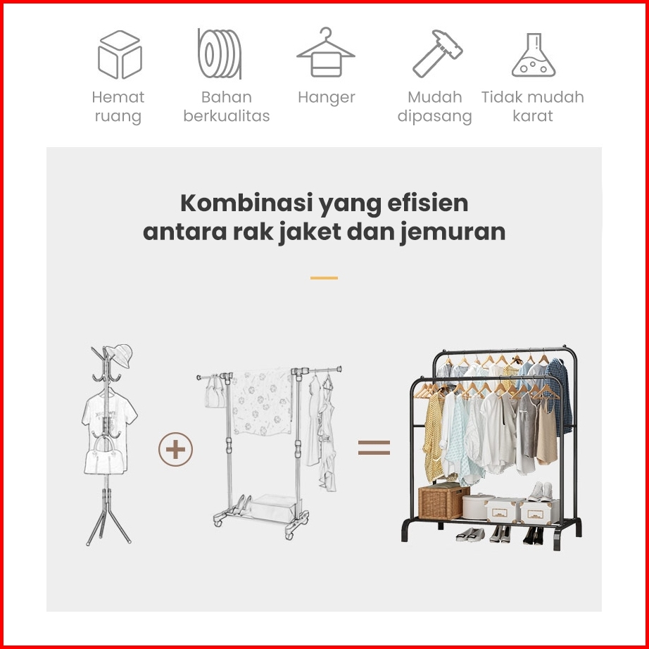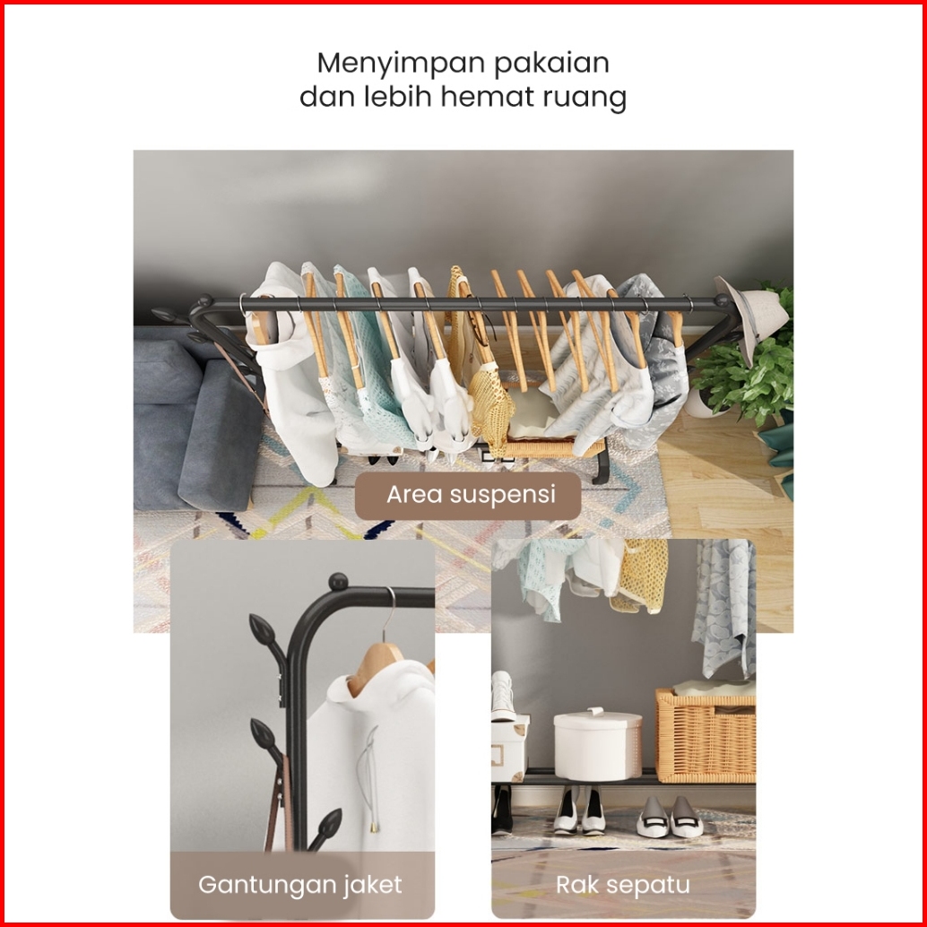 Megam Rak Gantungan Pakaian Serbaguna Stand Hanger Model Bercabang 2 Terbaru Hsh108