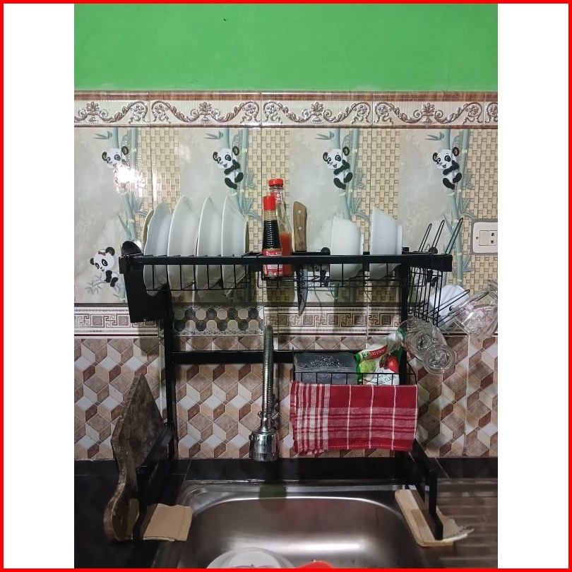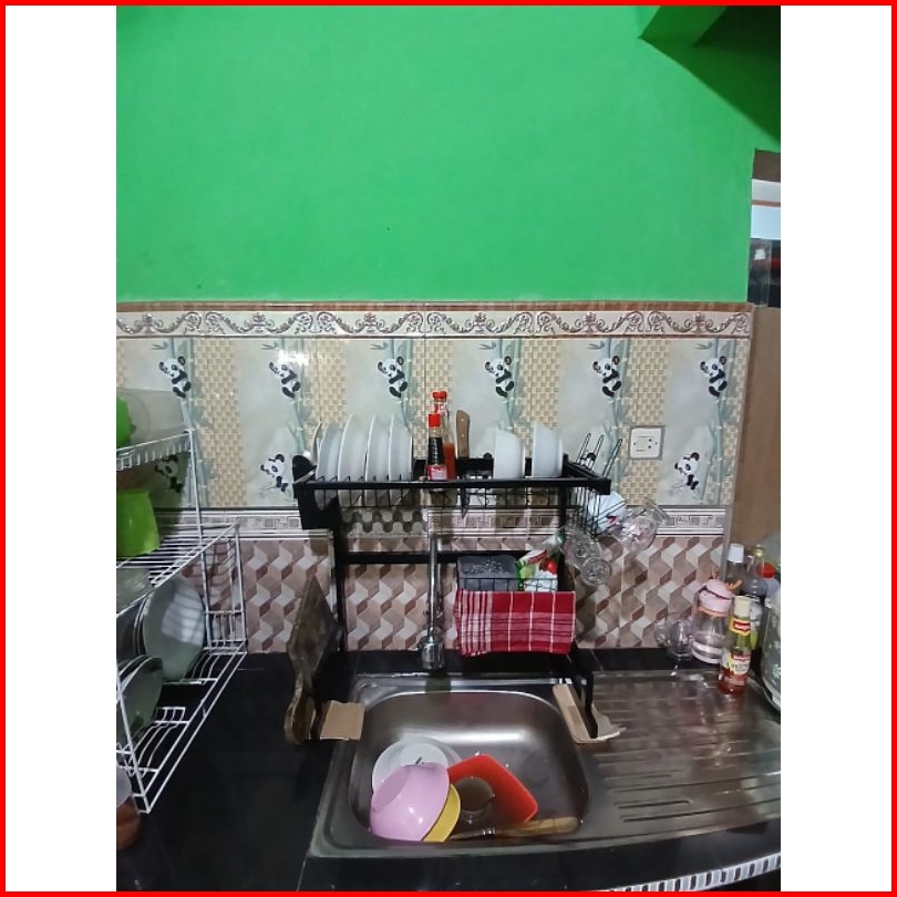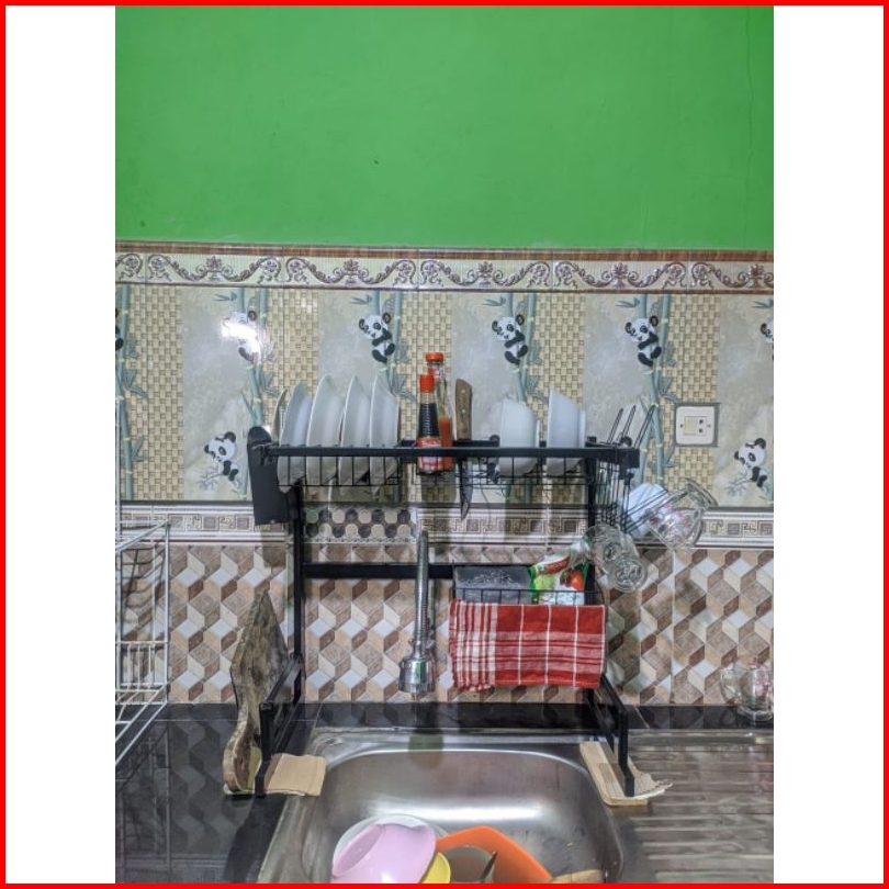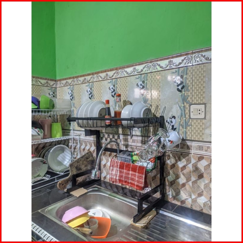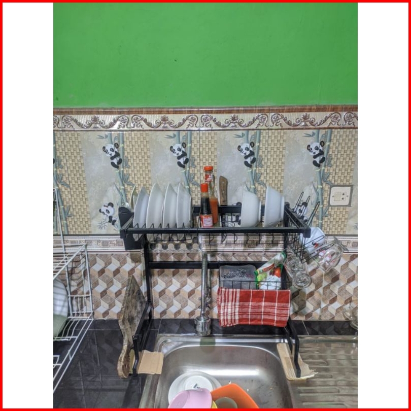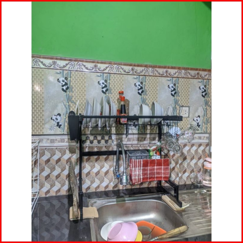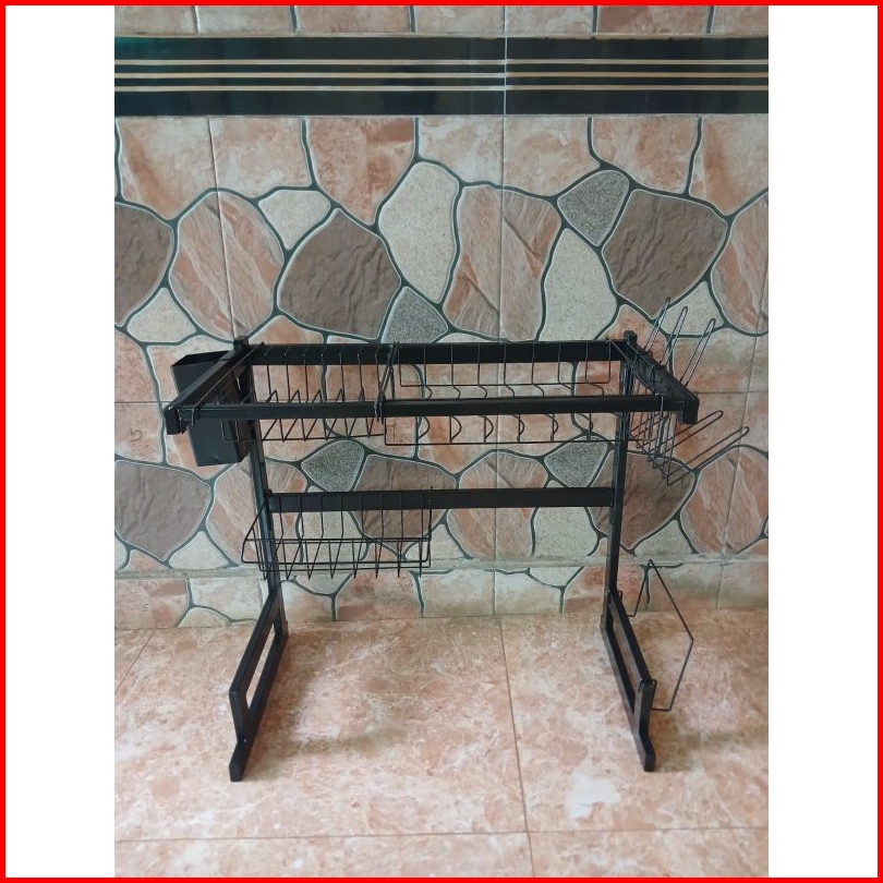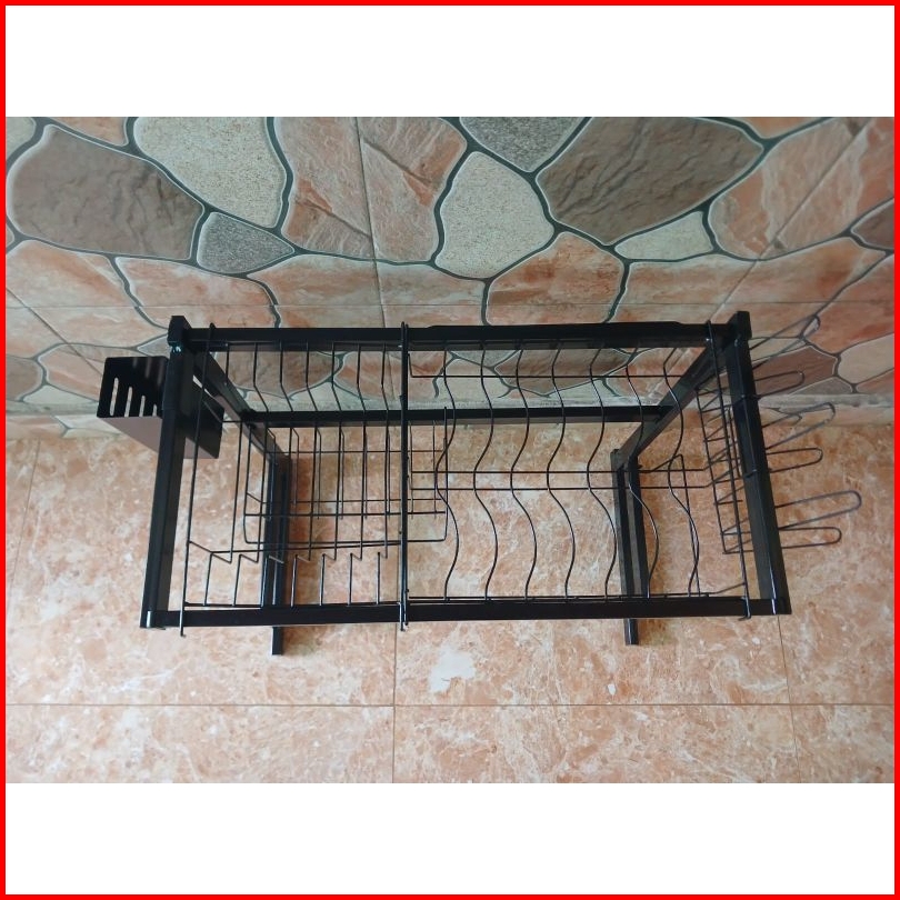 Rak Wastafel Cuci Piring Rak Piring Serbaguna Ukuran Terbaru 55cm Warna Powder Coating Hitam Bonus Spons Dan Mama Lemon
