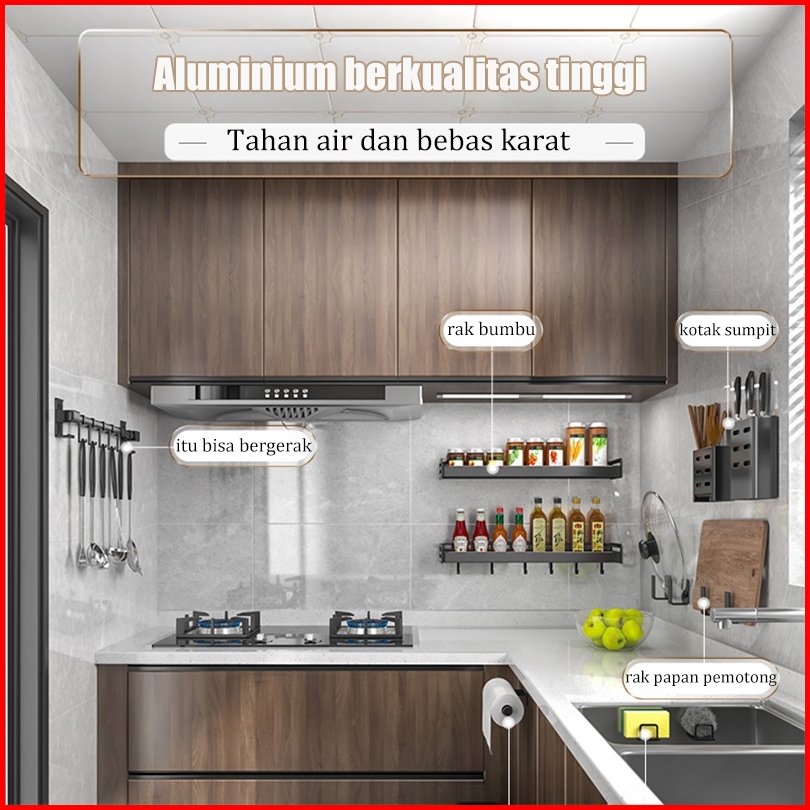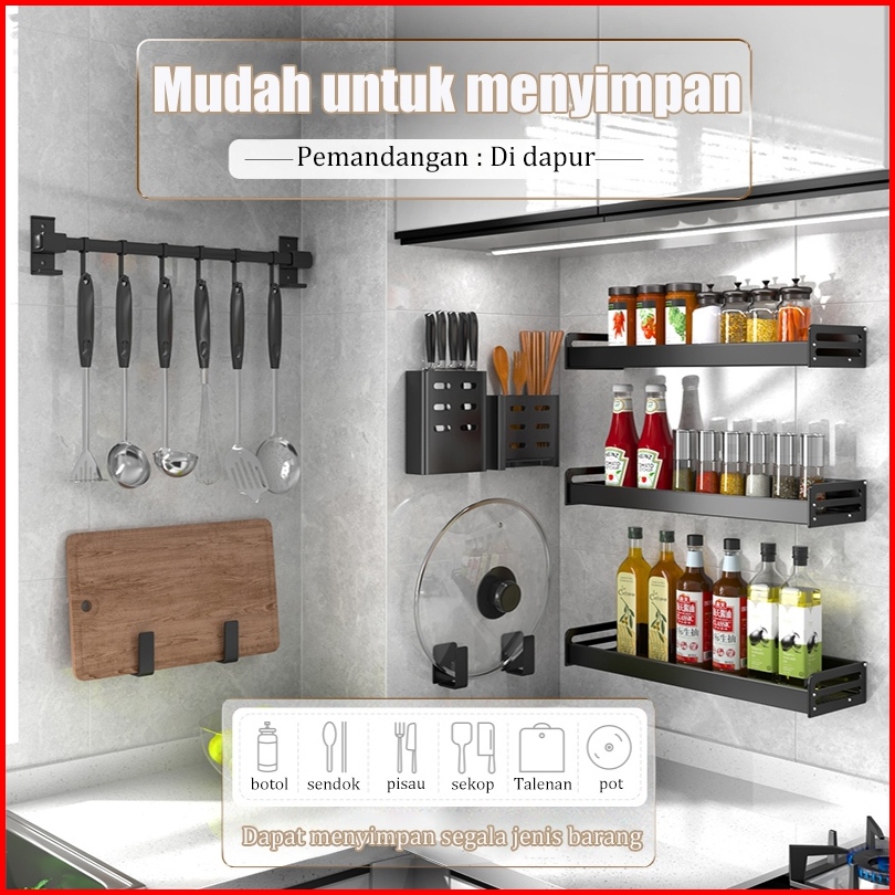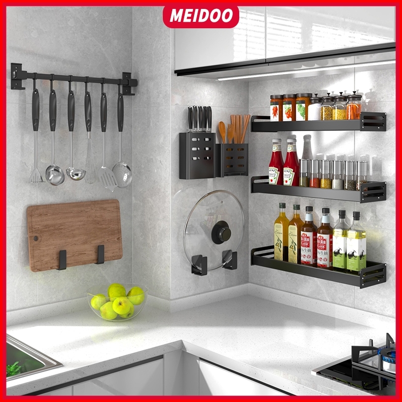 Meidoo Rak Dapur Rak Bumbu Tempel Dinding Tanpa Bor Tahan Air Tanpa Karat Rak Dapur Serbaguna