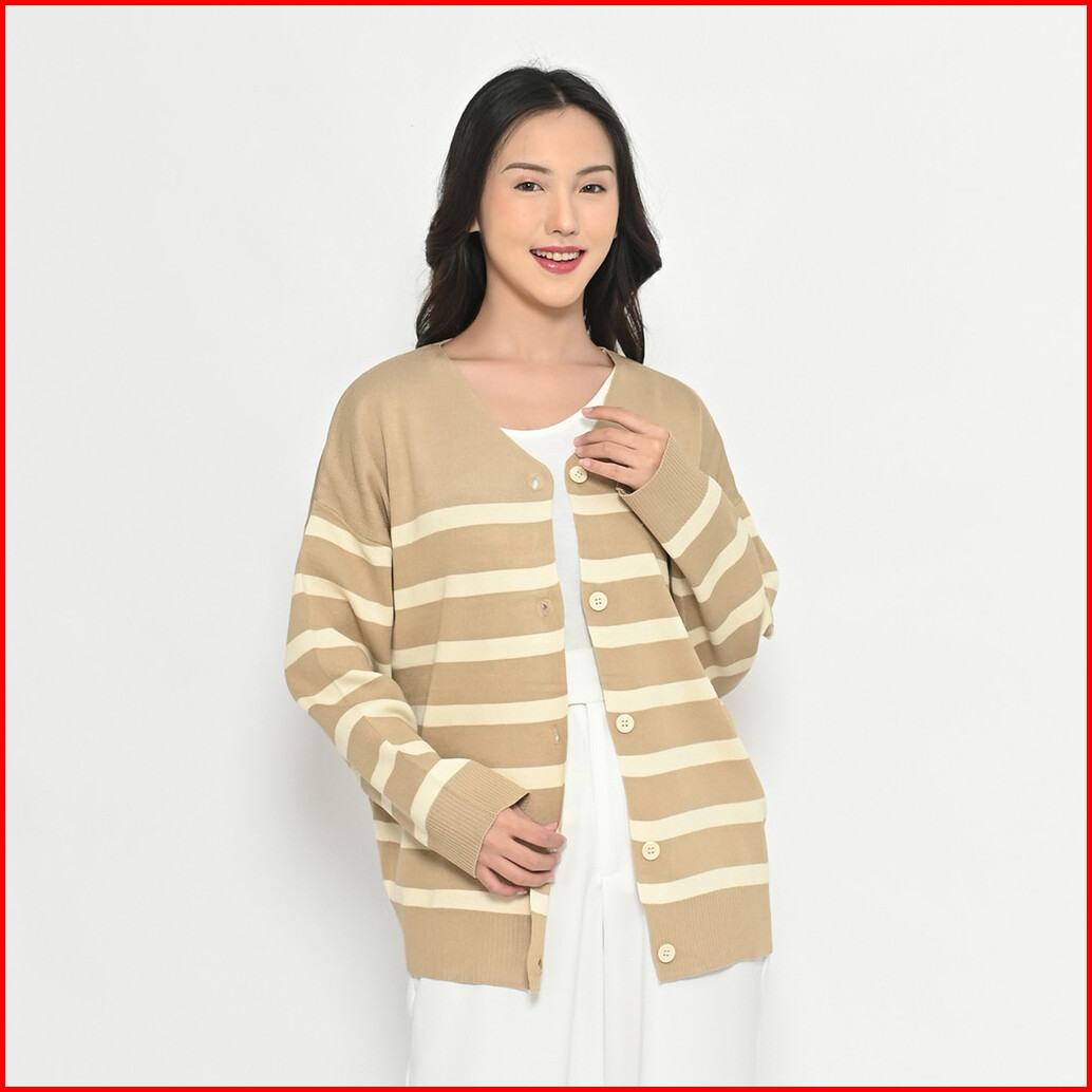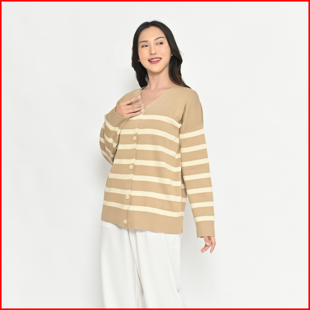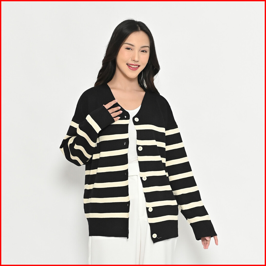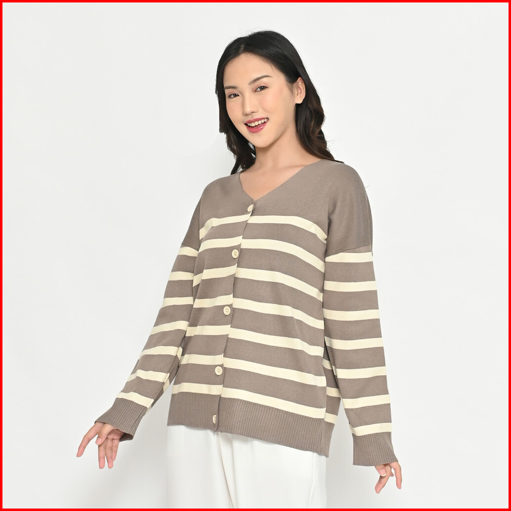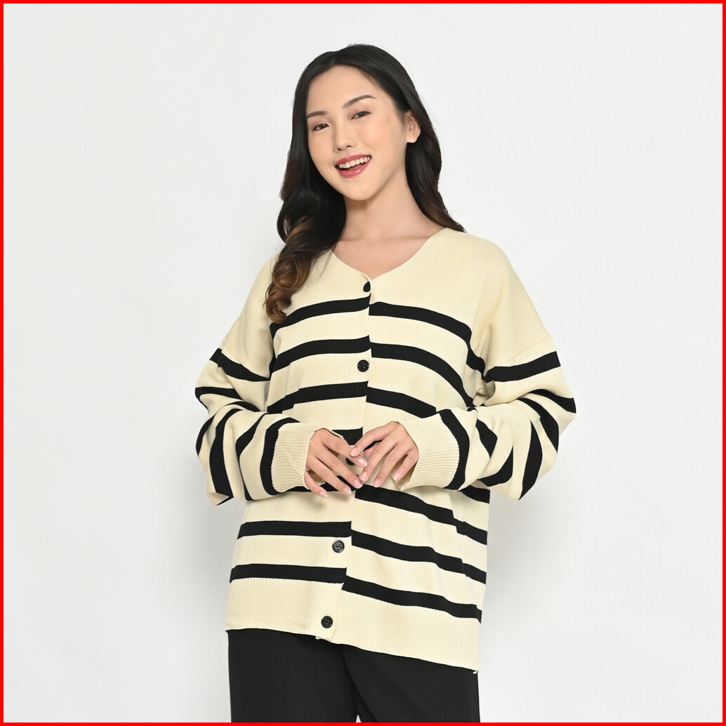 Queentin Cardigan Wanita Rajut 3110 Viscose Polyamide Knit Motif Salur Lengan Panjang