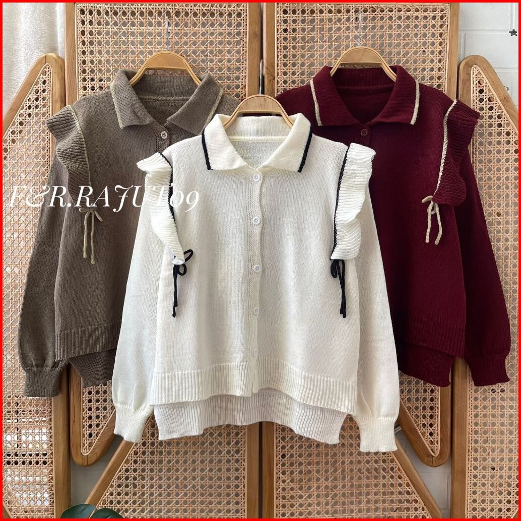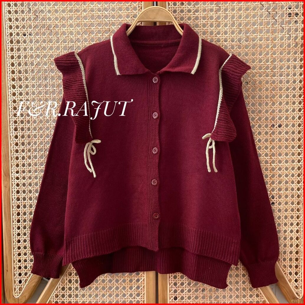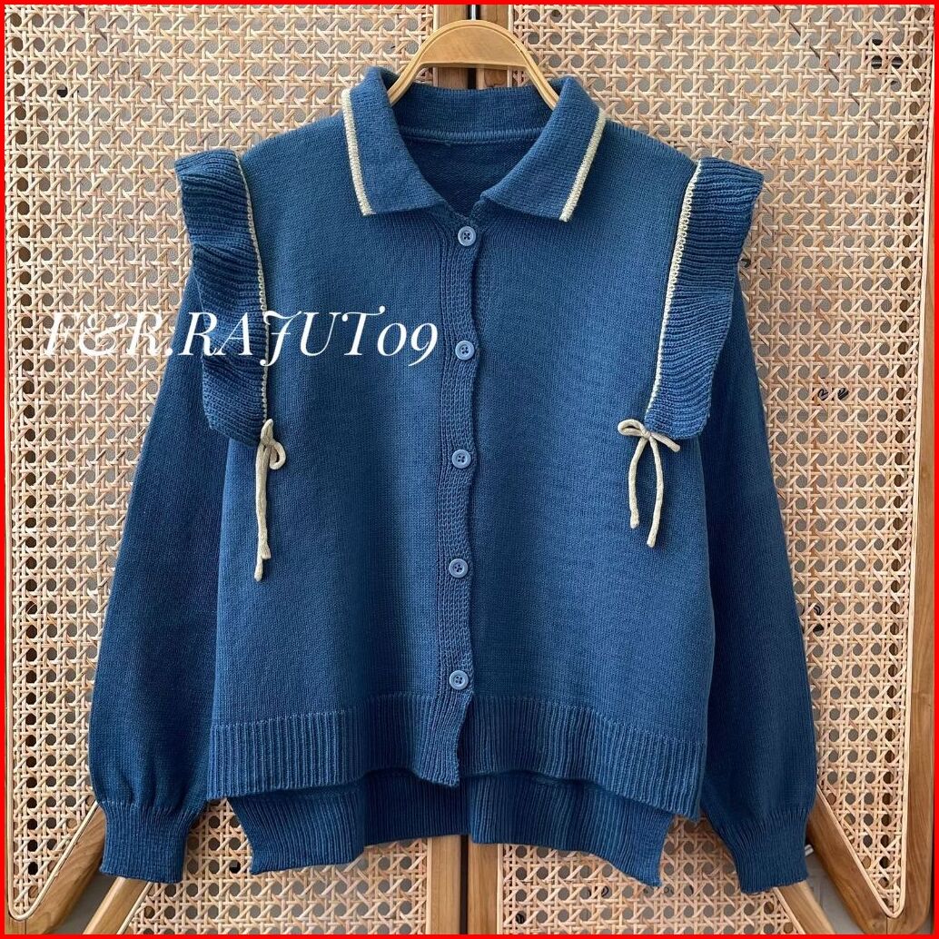 Alidah Cardigan Rajut Kancing Motif Tali Wanita Lengan Panjang Kekinian