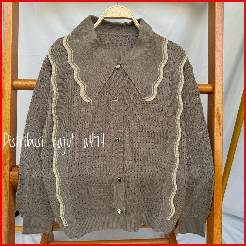 Elvira Ysk Atasan Baju Polo Cardigan Rajut Stripe Wanita Lucu Korean Stayle