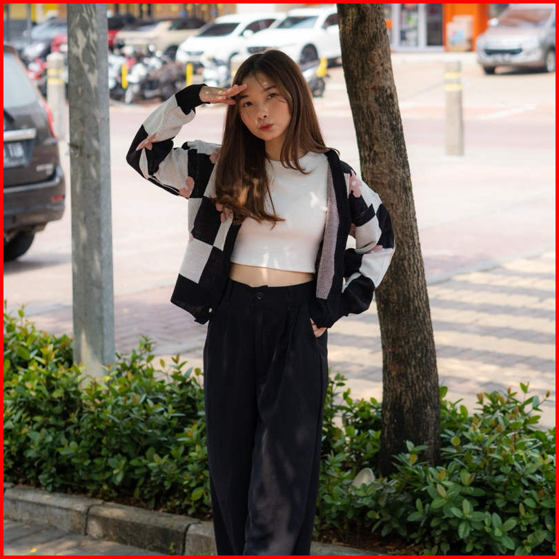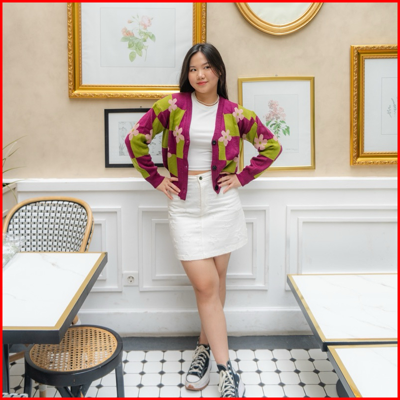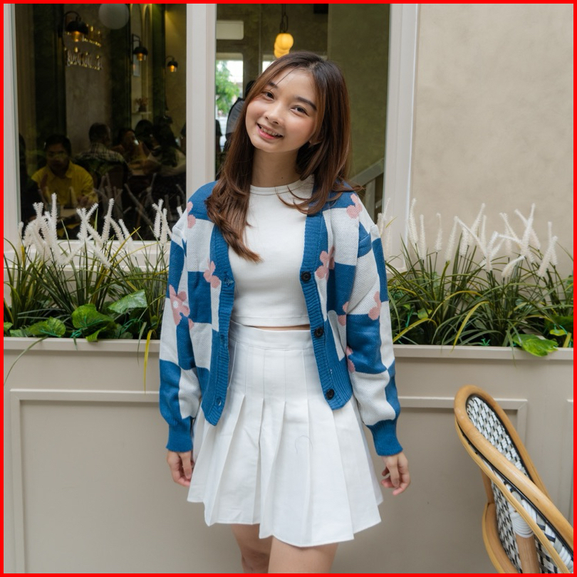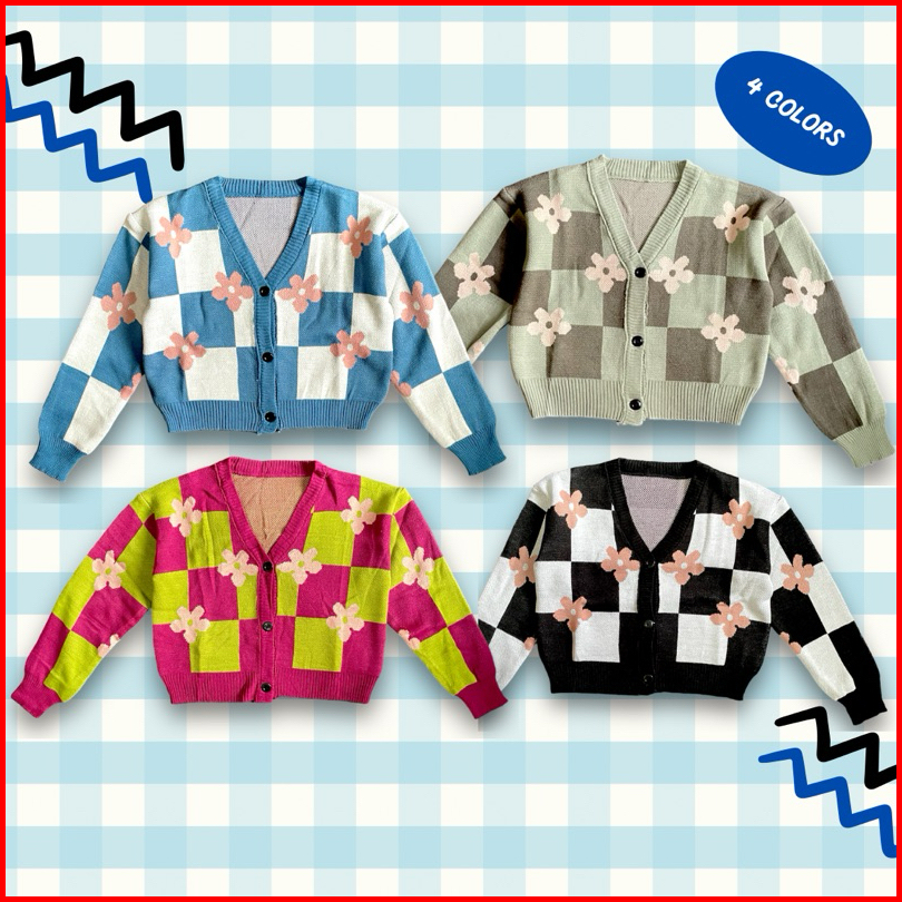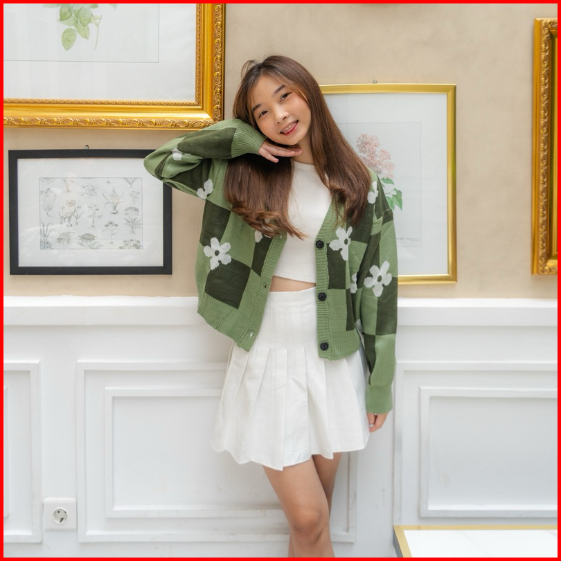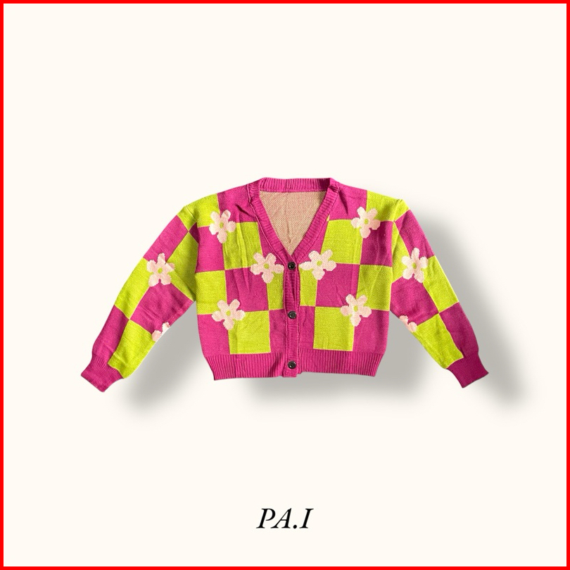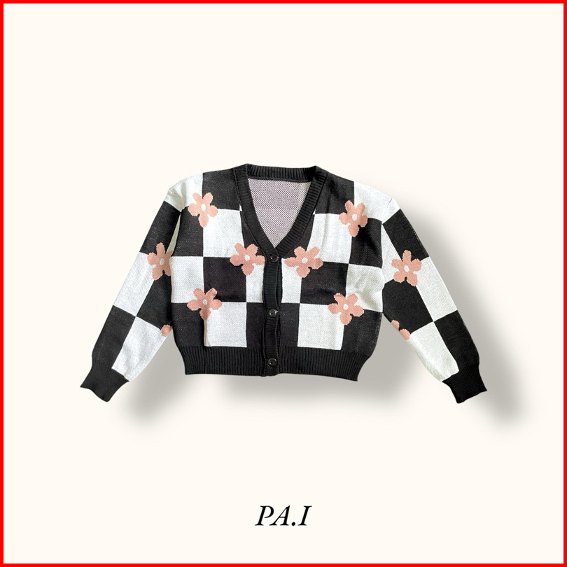 Cardigan Crop Flower Square - Cardigan Rajut Crop Wanita Korean Style