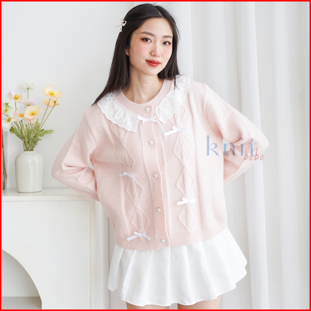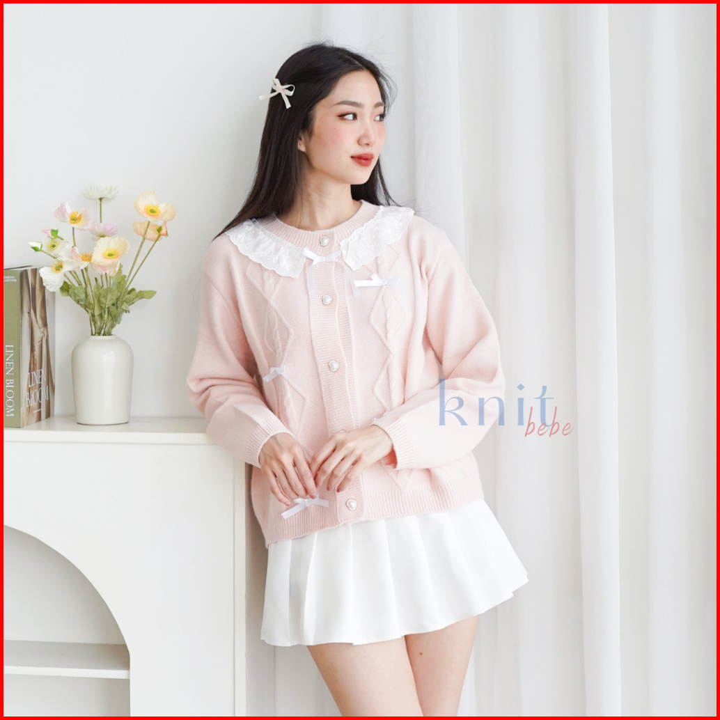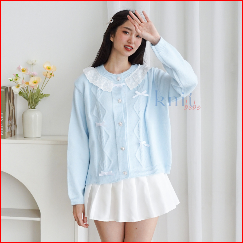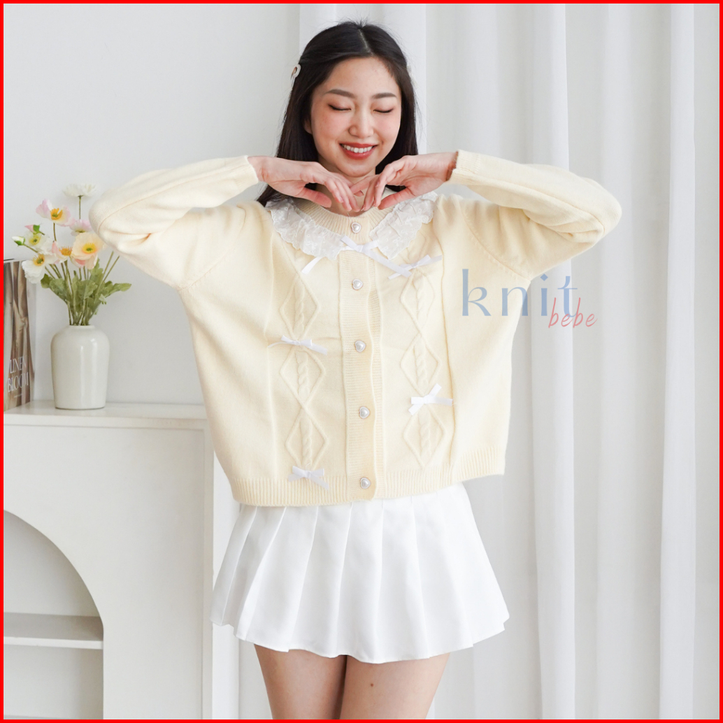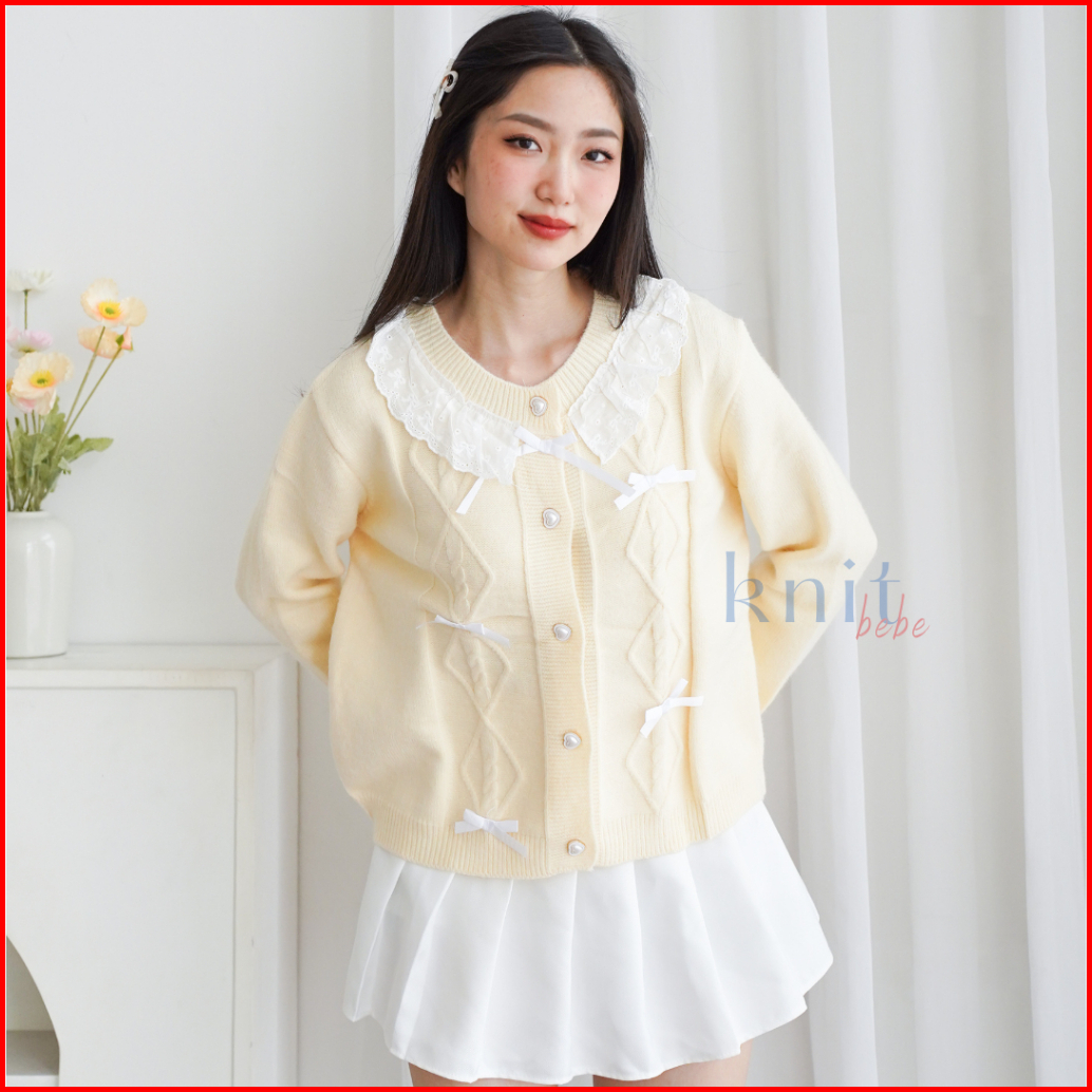 Knitbebe - Jean Atasan Cardigan Rajut Ribbon Knit Top Baju Pita Coquette