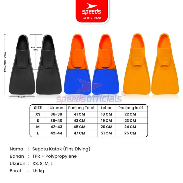 SPEEDS Kaki Katak Kaki Selam Kaki Kodok Diving Fin Alat Snorkling Fins Renang Original 017-F620