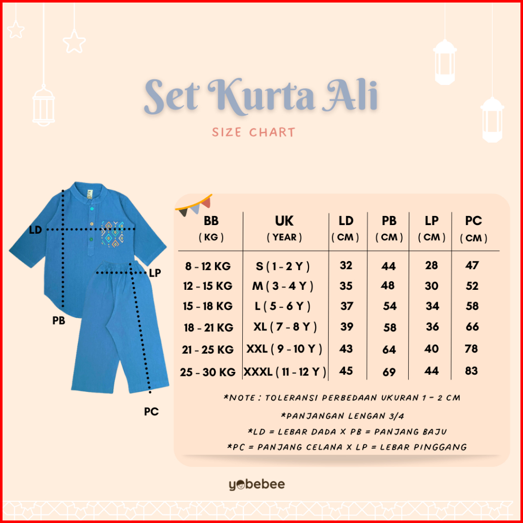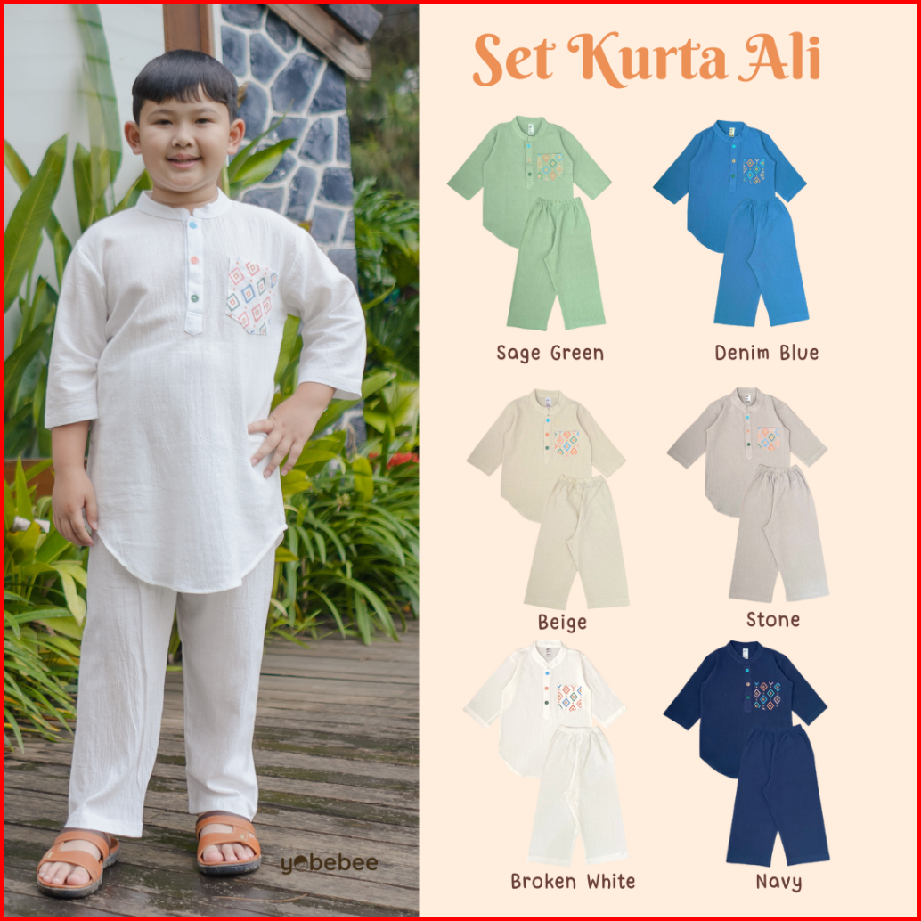 Yobebee Setelan Kurta Ali Anak Laki Laki Usia 2 3 4 6 8 10 12 Tahun Baju Muslim One Set Koko Eid Raya Series Couple Baju