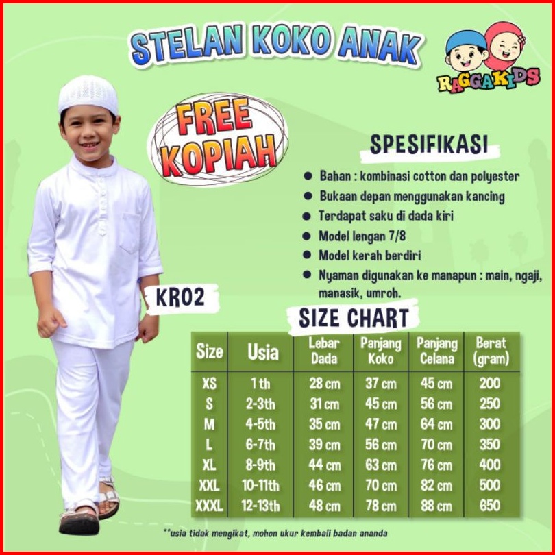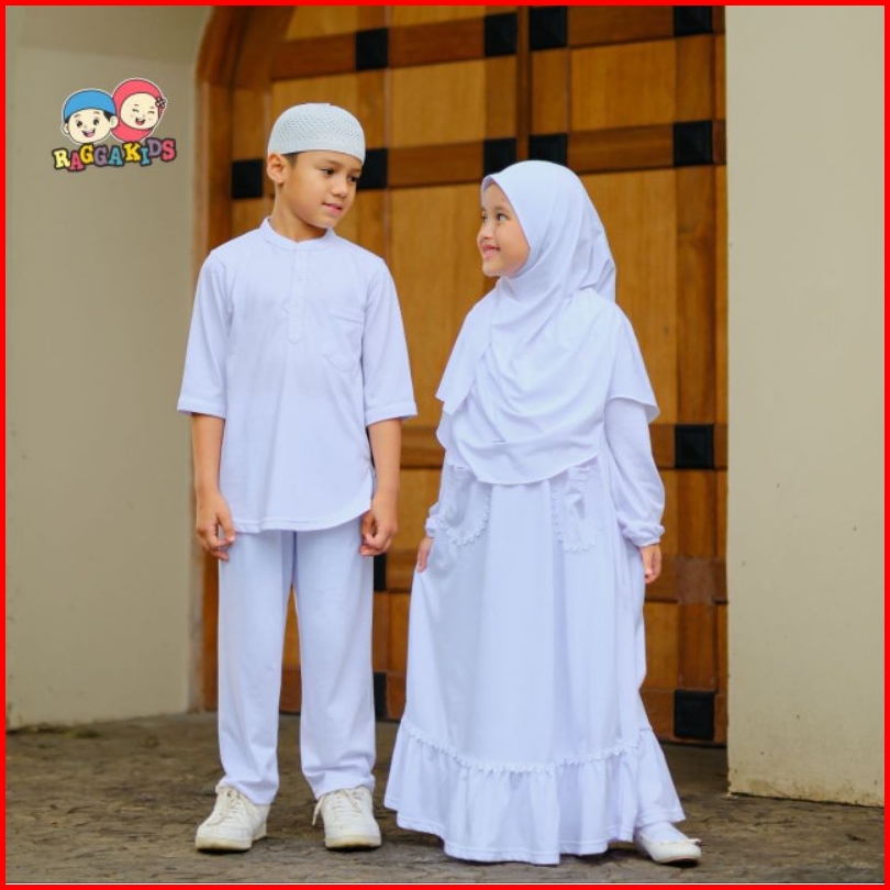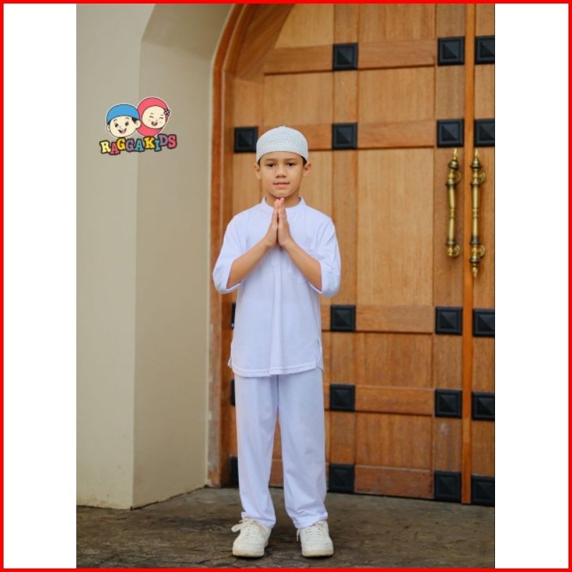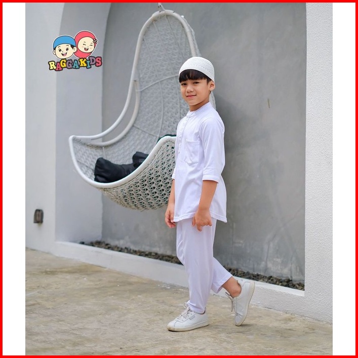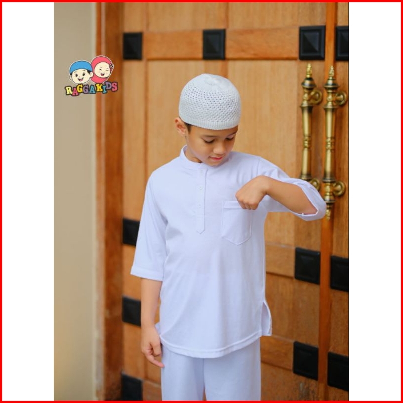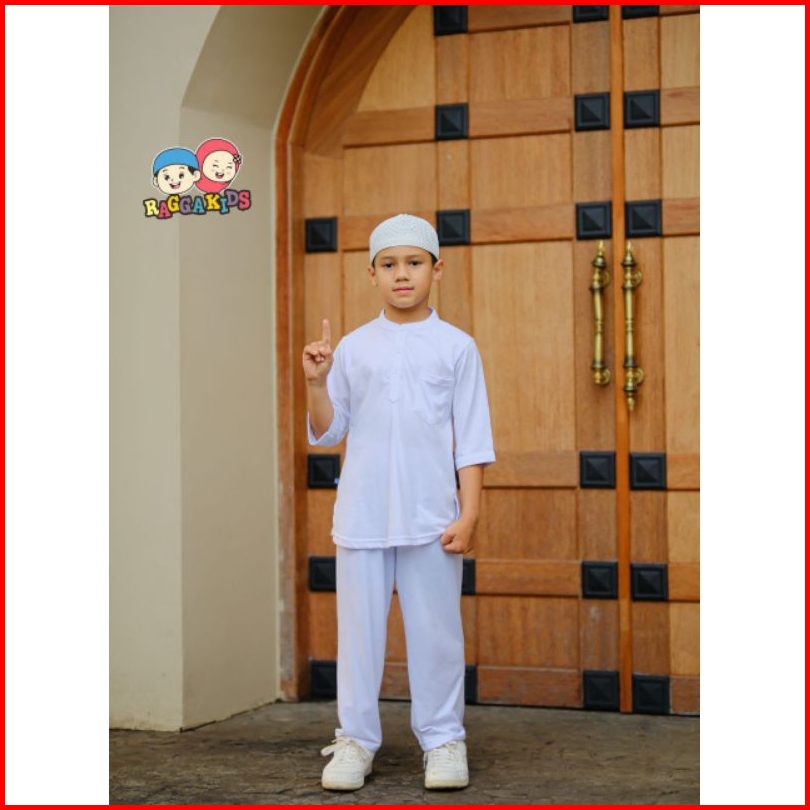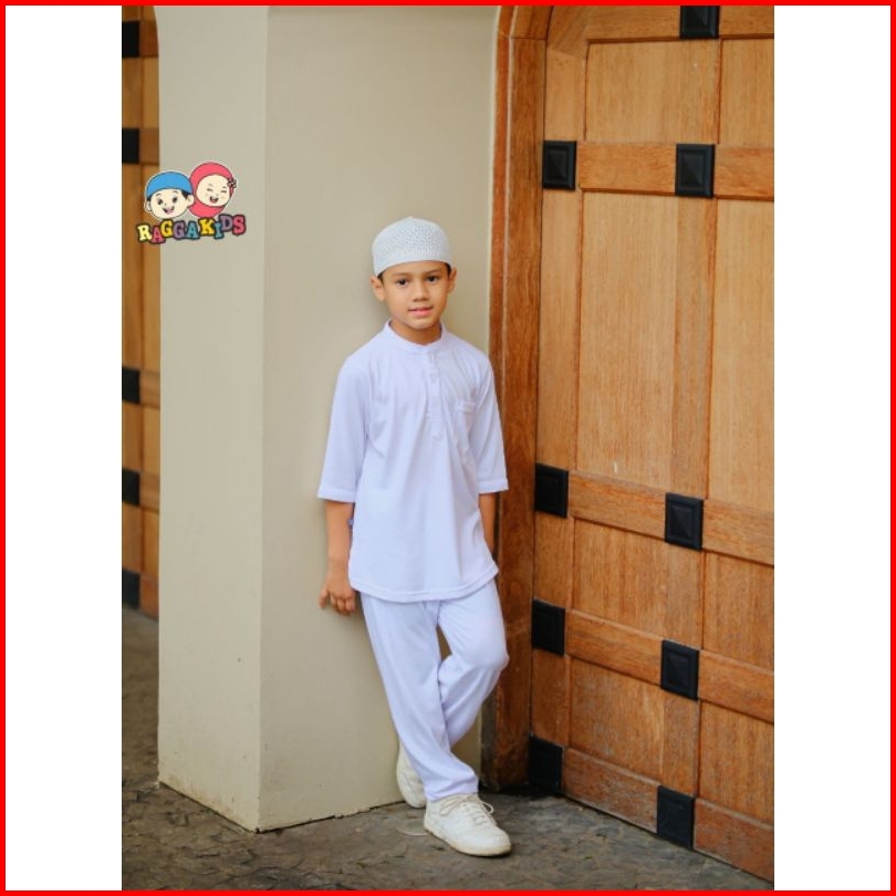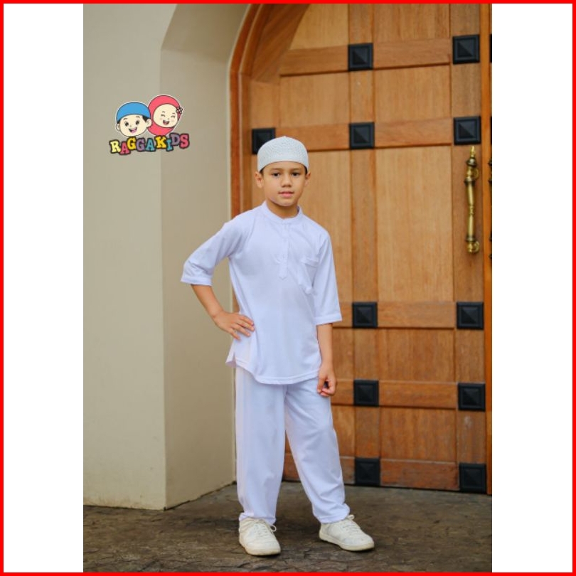 Stelan Koko Celana Panjang Free Peci Baju Setelan Putih Anak Laki-laki Usia 1-13 Tahun Bahan Kaos Adem Raggakids