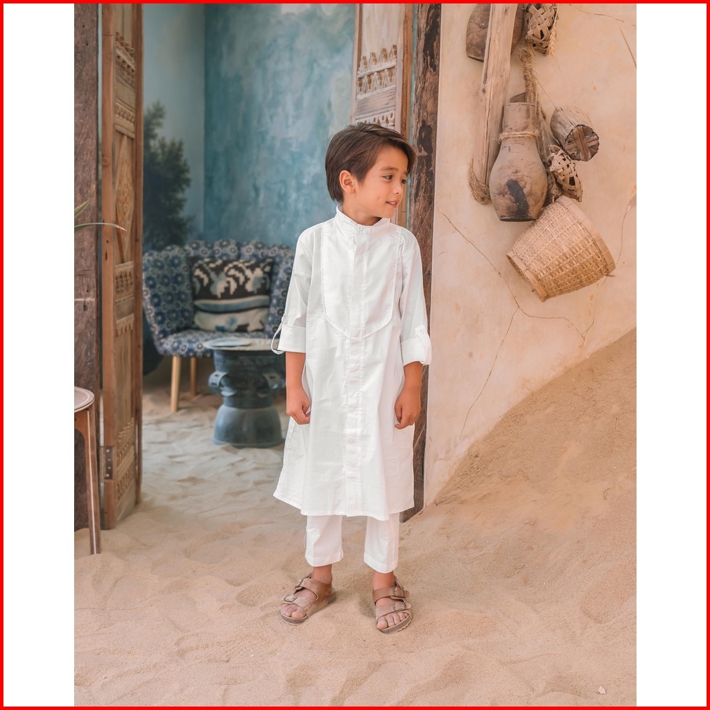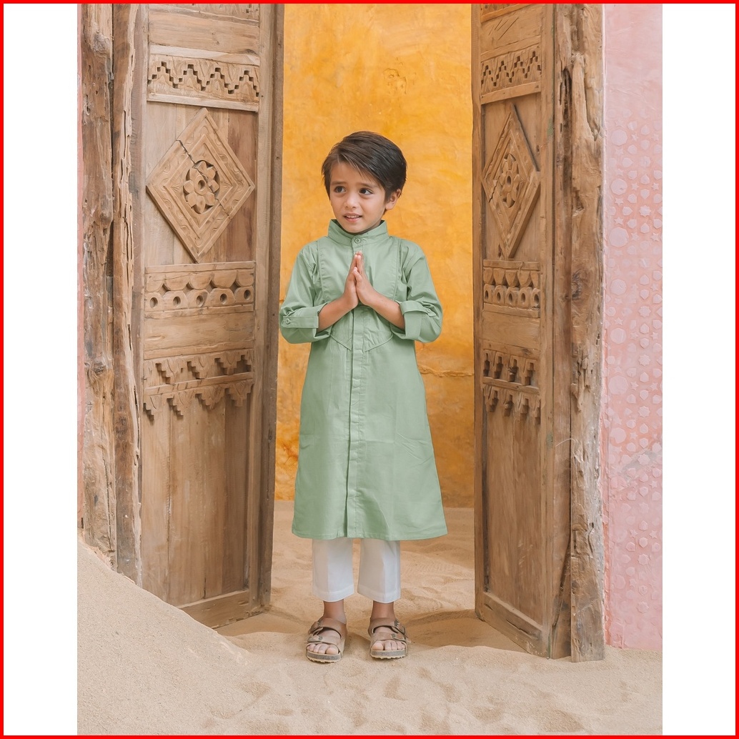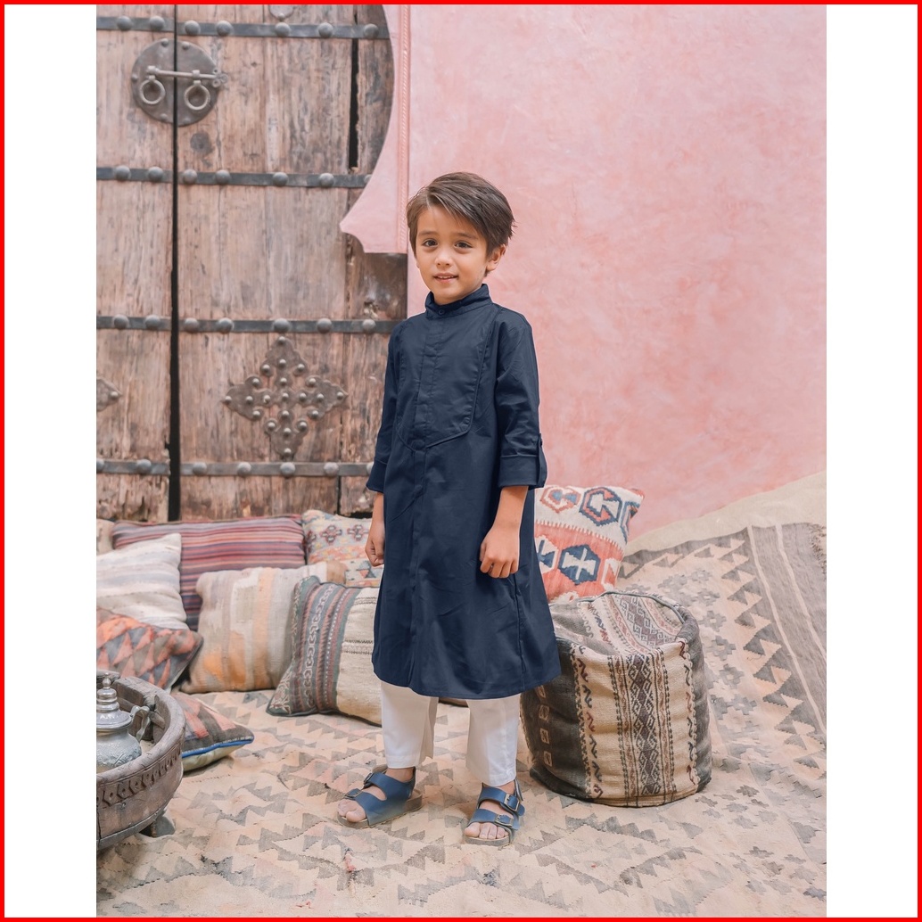 Patrol Koko Set Koko Katun Anak Setelan Muslim Anak Laki-laki Kurta Anak Polos Kemeja Koko Anak Lengan Panjang