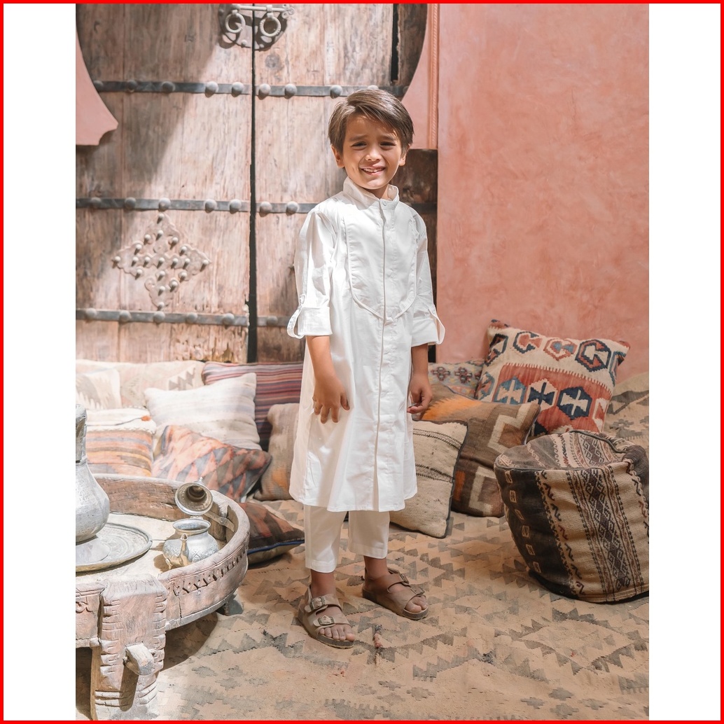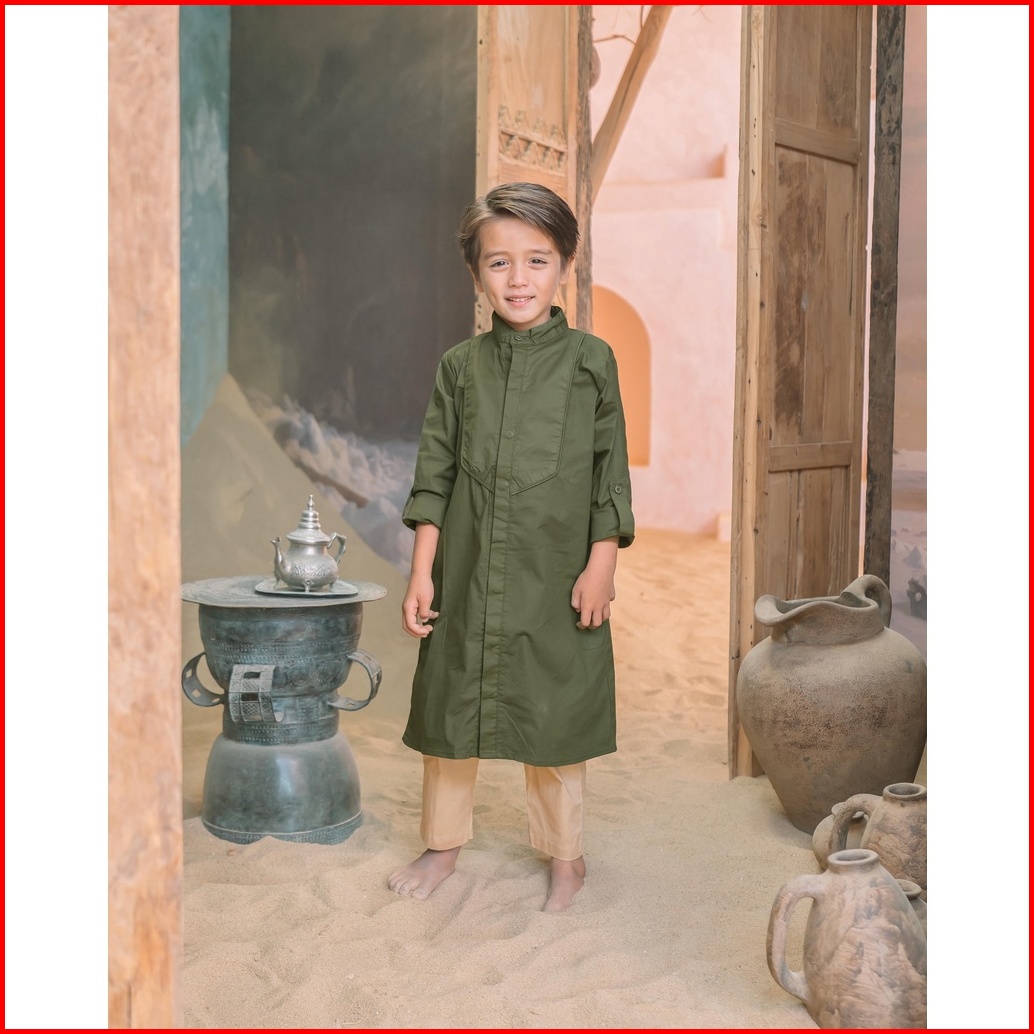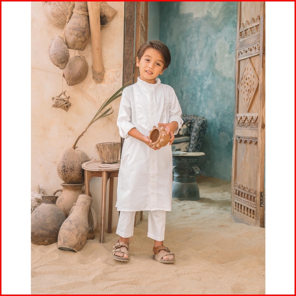 Patrol Koko Set Koko Katun Anak Setelan Muslim Anak Laki-laki Kurta Anak Polos Kemeja Koko Anak Lengan Panjang