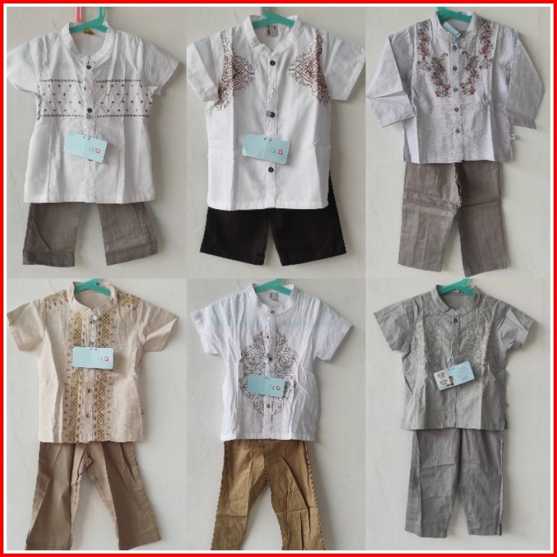 Rf Qna Kemeja Koko Set Setelan Anak Cowok Sz 1-4