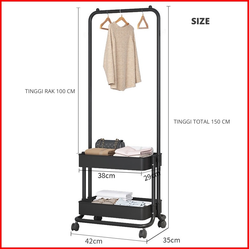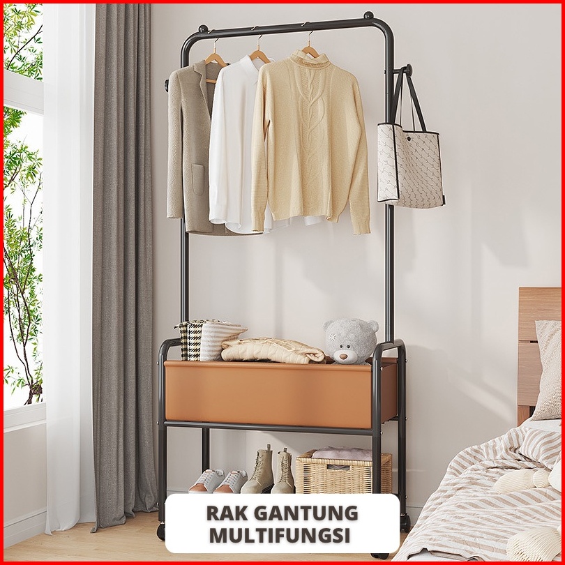 Halu Rak Gantungan Baju Stand Hanger Jemuran Pakaian Topi Tas Jaket Serbaguna Rak Sepatu Rak Baju Rak Besi Dengan Roda H