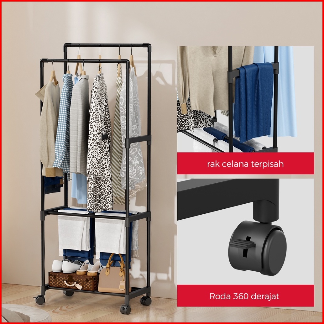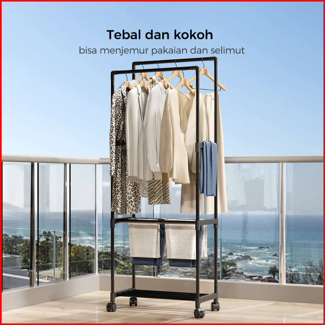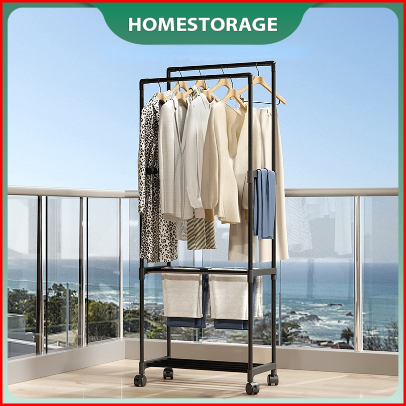 Homestorage Rak Gantungan Baju Serbaguna Stand Cloth Hanger Besi Stand Hanger Display Butik Bazar Jemuran Pakaian