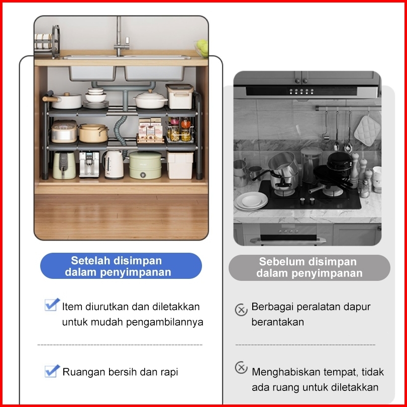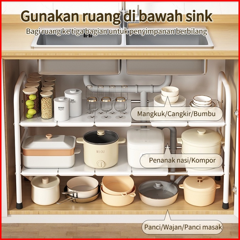 Aynsley-rak Dapur Stainless Steel Yang Dapat Ditarik Di Bawah Rak Panci Wastafel Rak Multifungsi