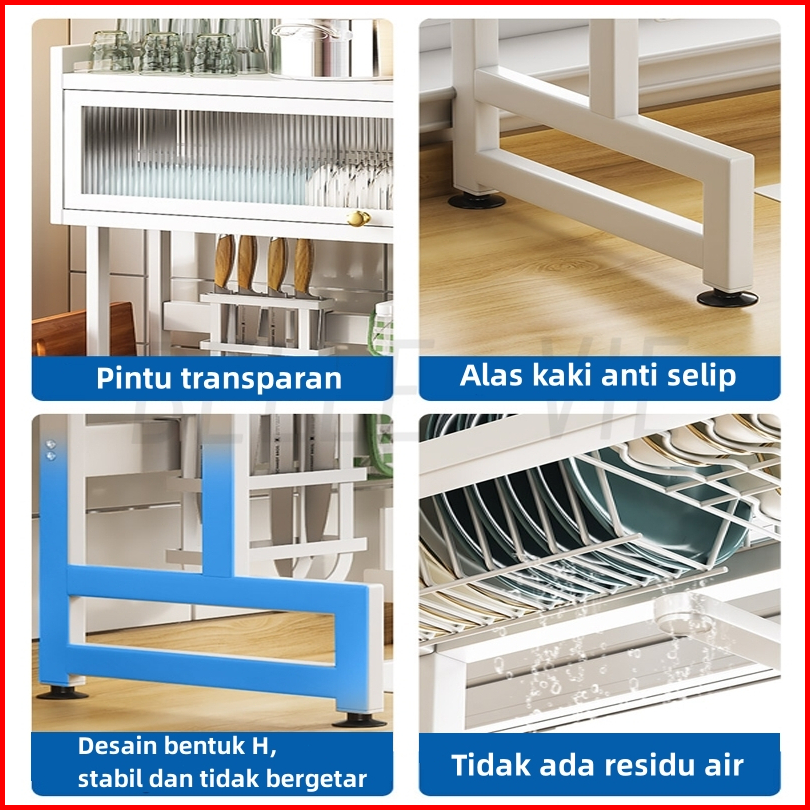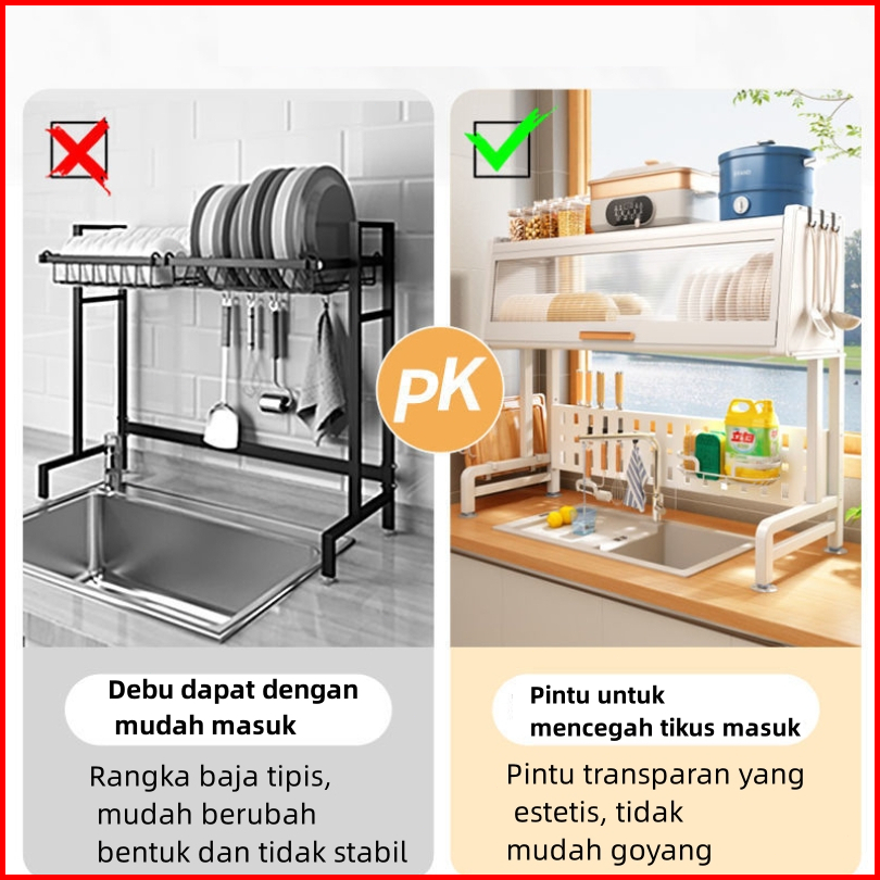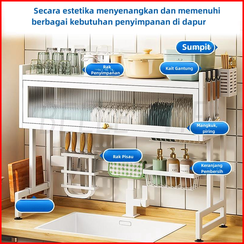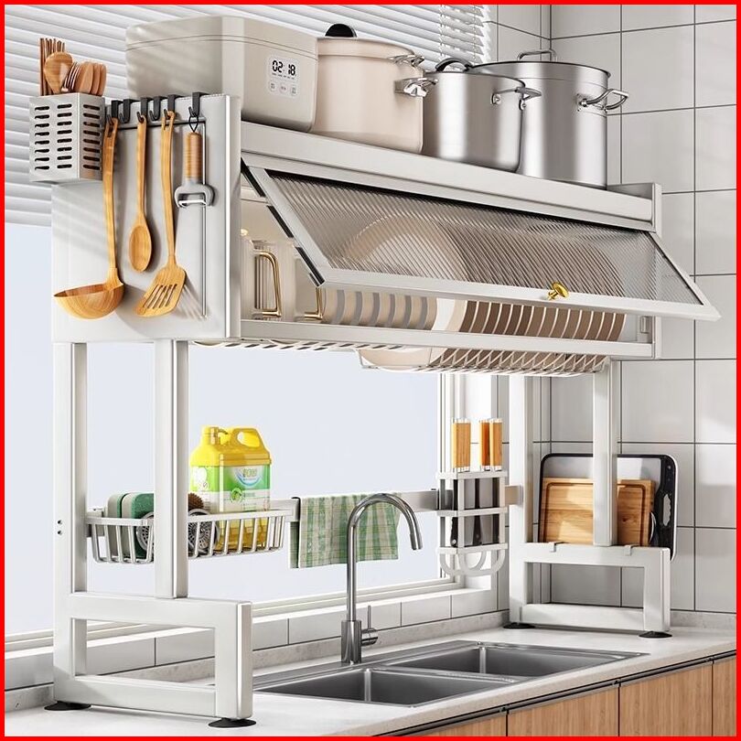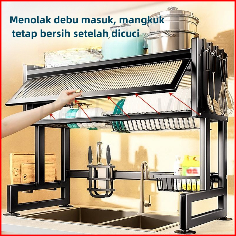 Dapur Rak Piring Gantung Rak Piring Wastafel Dapur Stainless Steel Multi-fungsi Dengan Penutup Rak Dapur Dengan Aksesori
