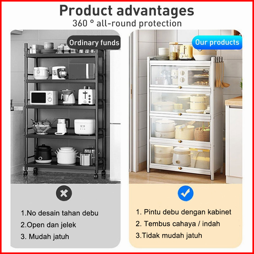 Rak Lemari Dapur Rak Oven Microwave Rak Kabinet Dapur Rak Dapur Anti Debu Lemari Dapur Dengan Pintu Rak Dapur