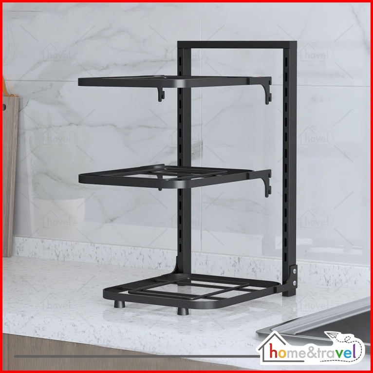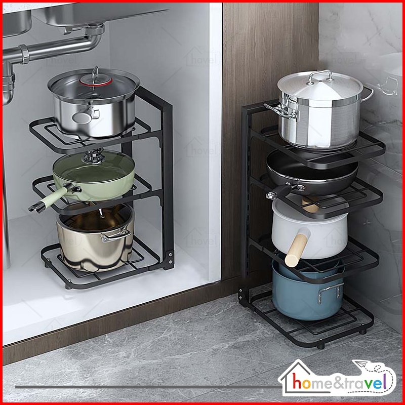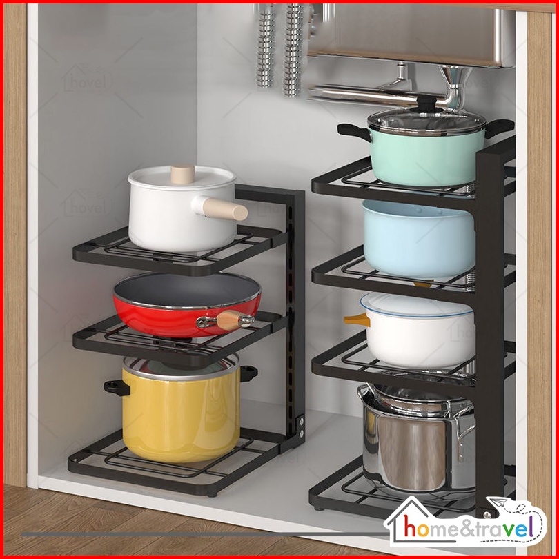 Hovelshop Rak Panci Dapur Bawah Wastafel Susun Pot Kabinet Stainless Steel Tingkat Serbaguna