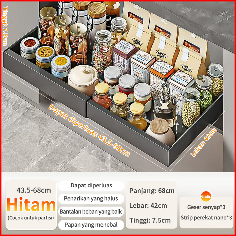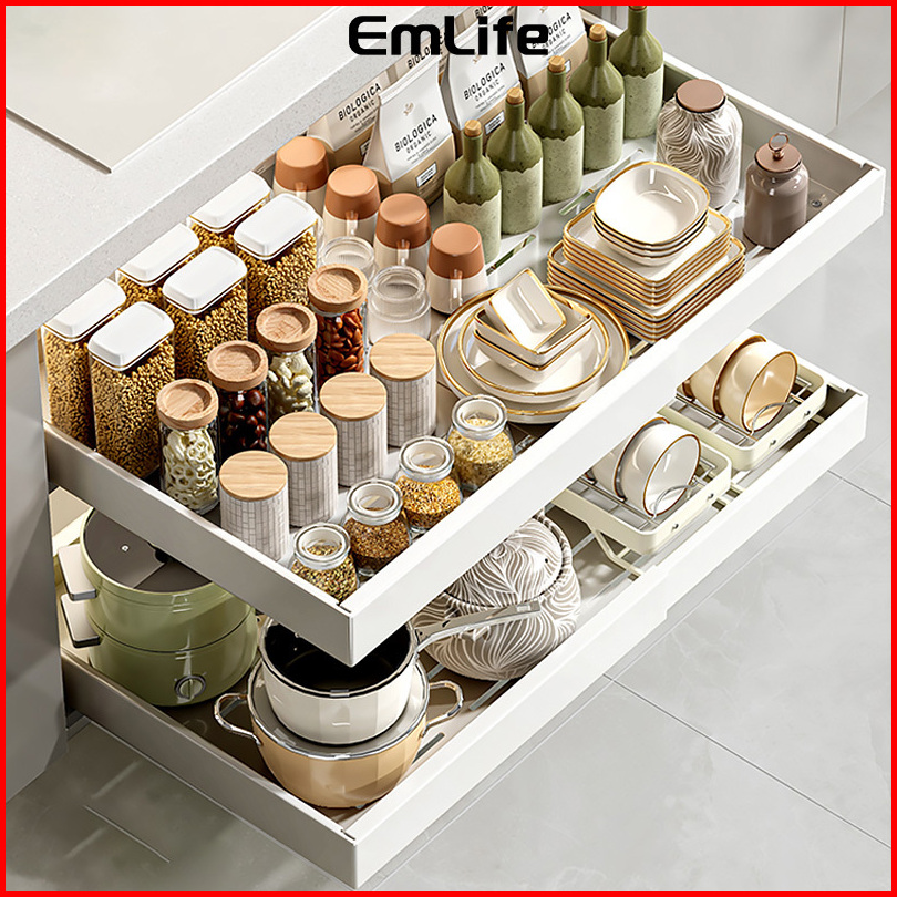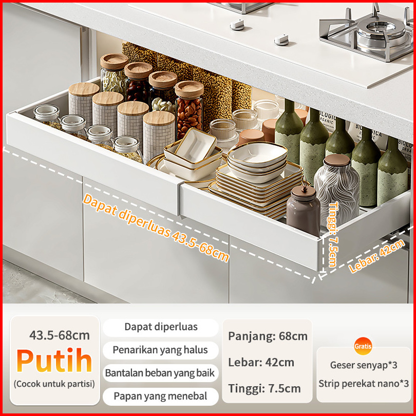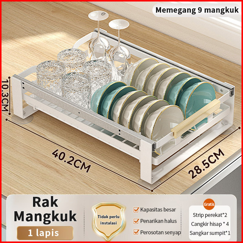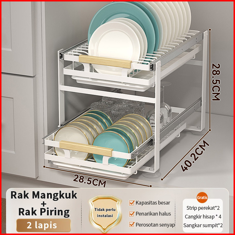 Rak Piring Tarik Rak Laci Piring Rak Piring Untuk Kabinet Rak Mangkuk Rak Dapur Serbaguna Rak Kabinet Lemari Rak Geser K
