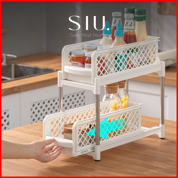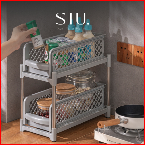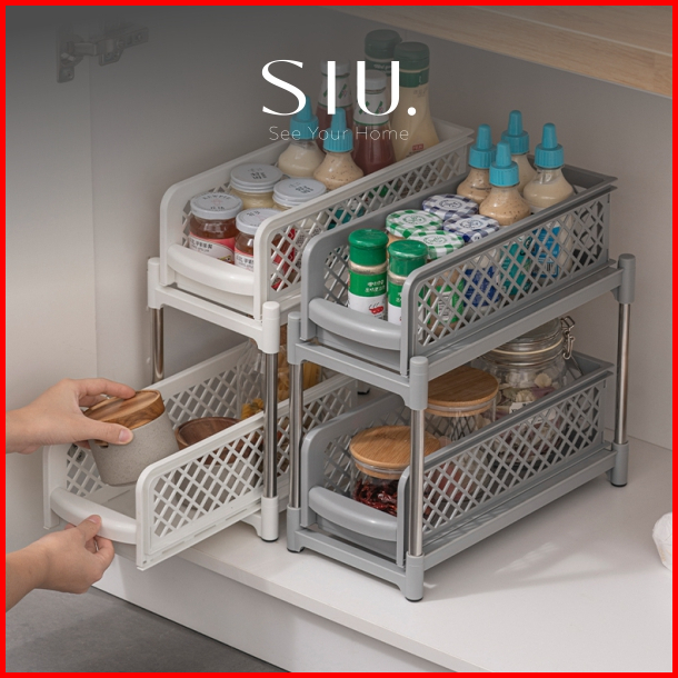 Rak Kabinet Lemari Dapur Wastafel Keranjang Multifungsi Tarik Geser