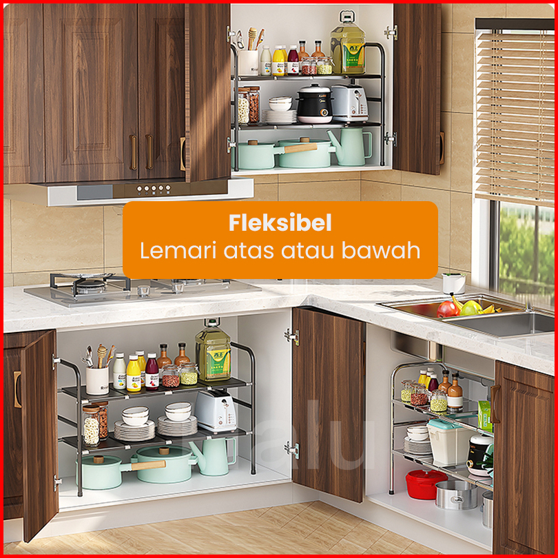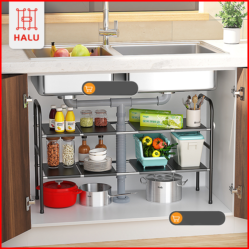 Halu Rak Dapur Stainless Steel Minimalis Rak Panci Wastafel Rak Penyimpanan Penyimpanan Hrm160