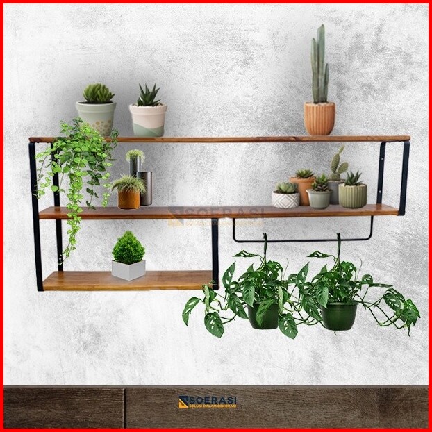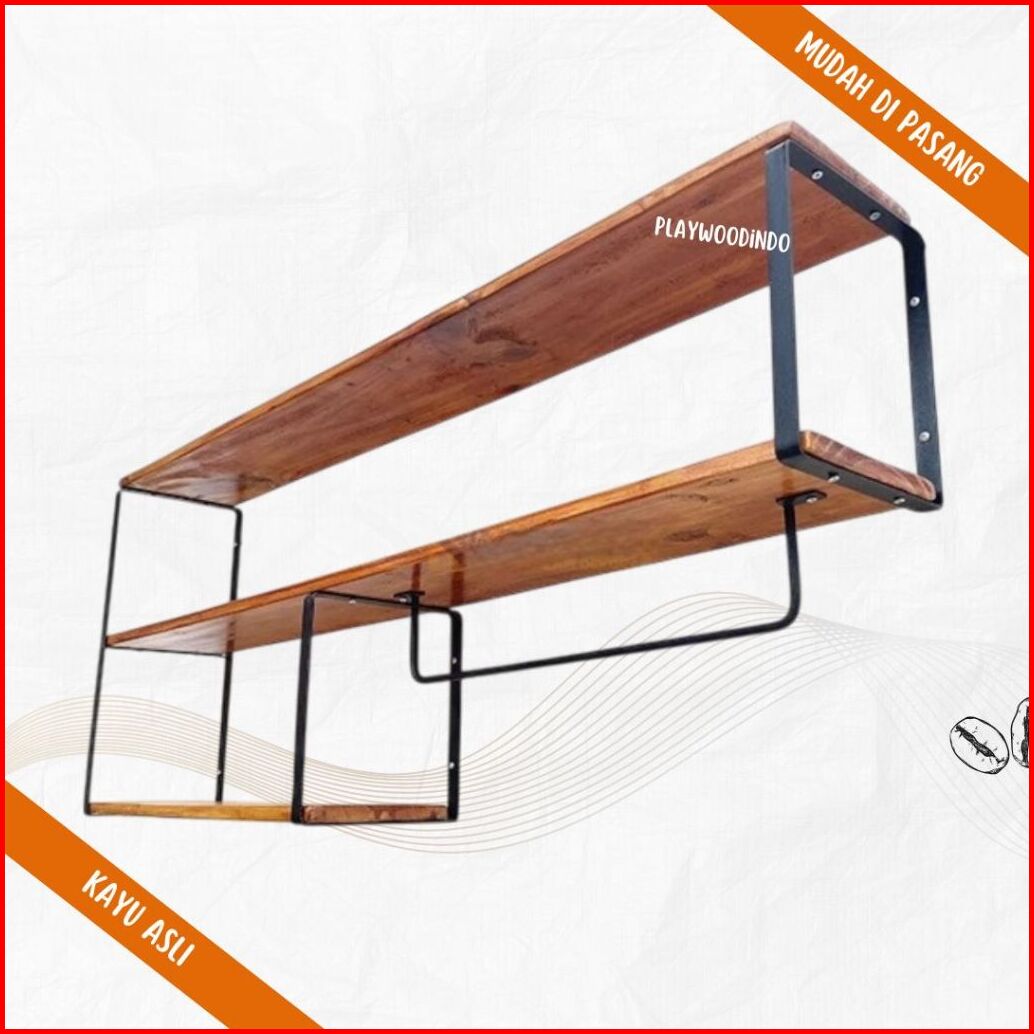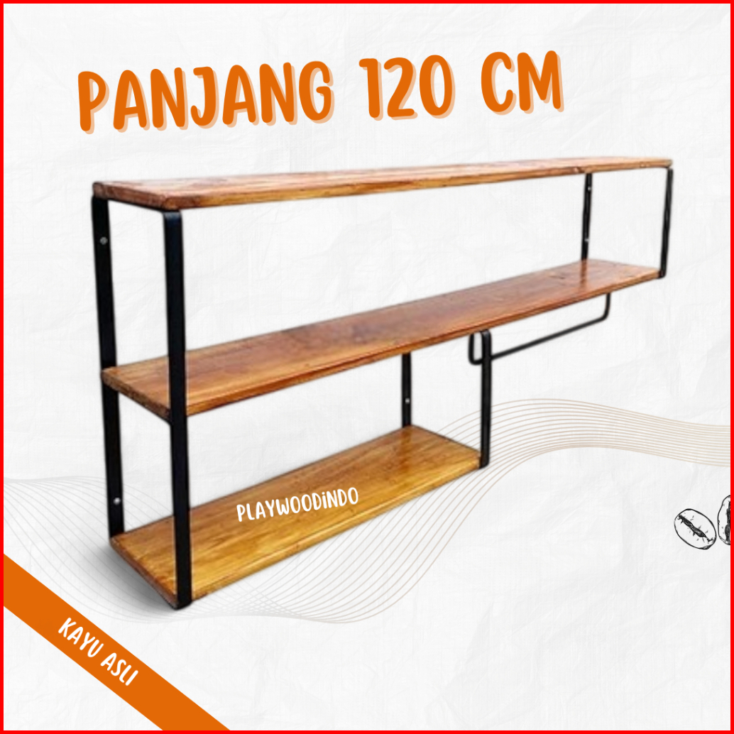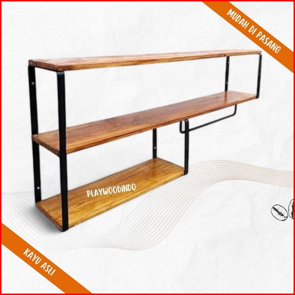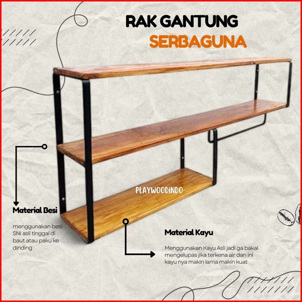 Playwood Rak Dinding Keli Kitchen Set Rak Penyimpanan Serbaguna Dapur Ambalan Kayu Besi Gantung
