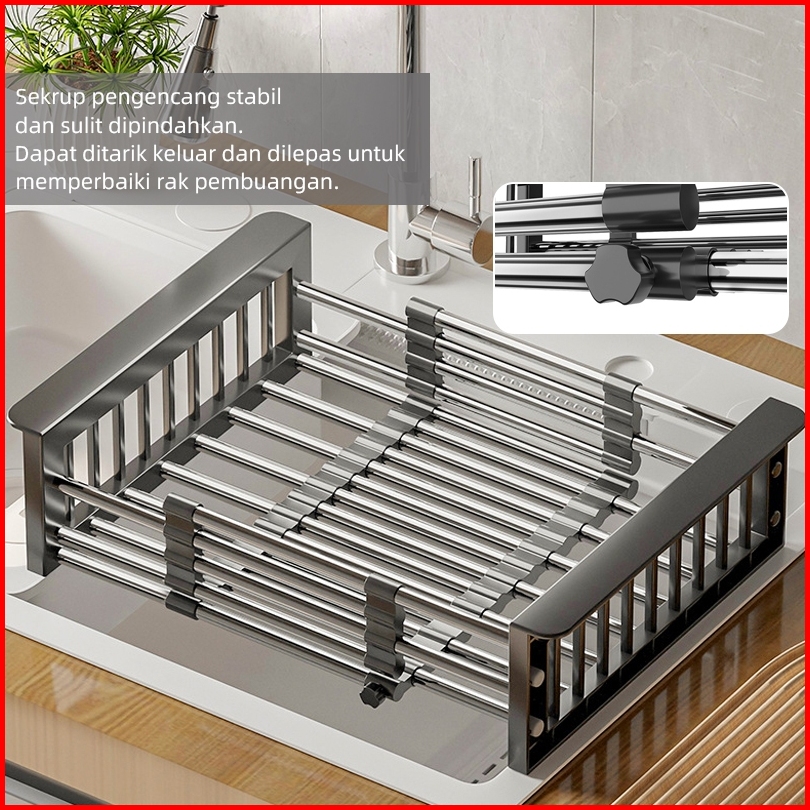 Sunlise Keranjang Sink Drainer Basket Rak Bak Cuci Piring Tirisan Buah Sayur Wastafel Retractable 304 Stainless Steel