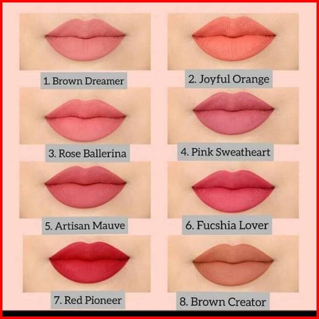 01,brown dreamer, 02joyful orange, 03rose ballerina, 04 pink sweatheart, 05 artisan mauve, 06fucshia lover, 07 red pioneer, 08brown creator