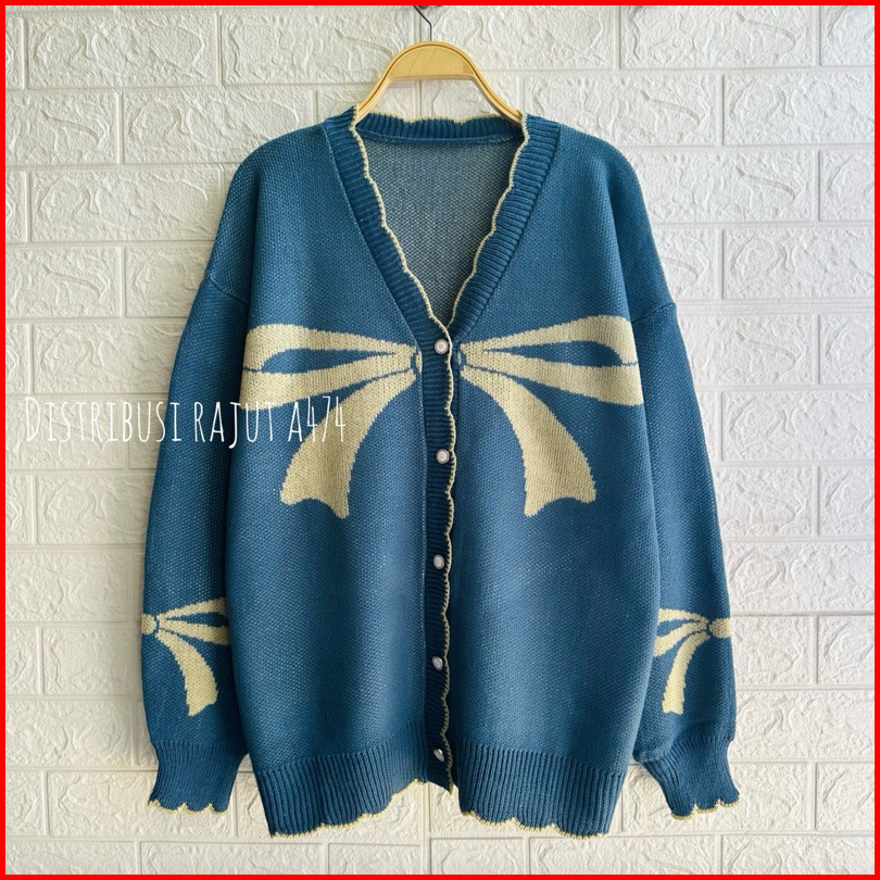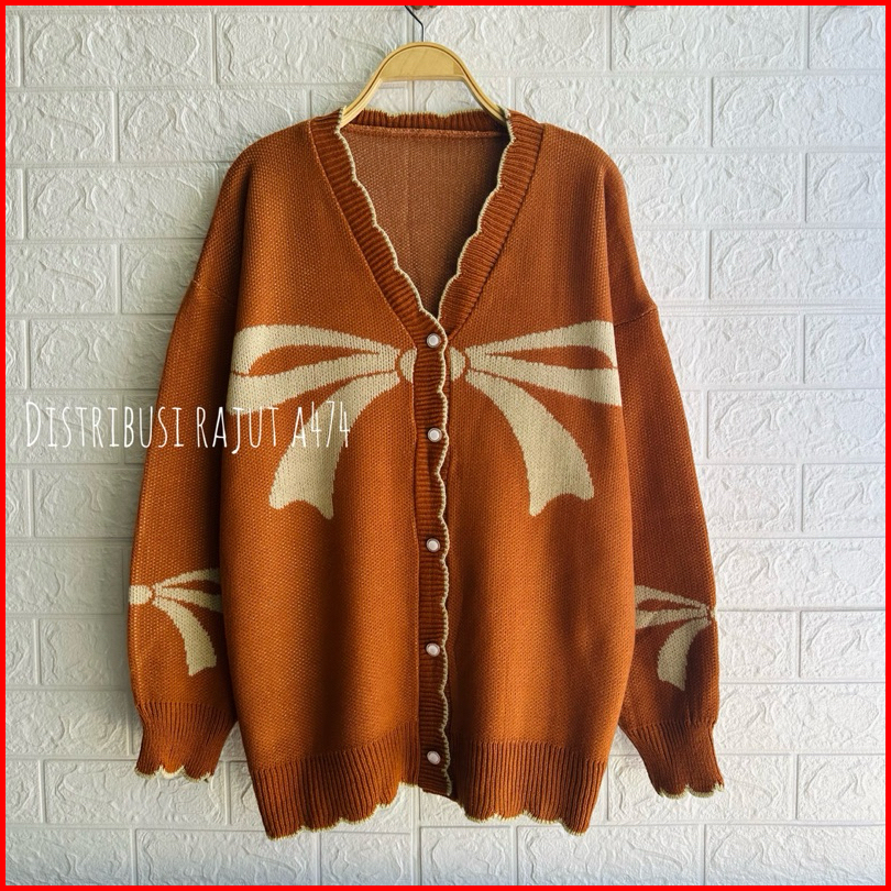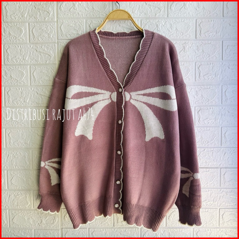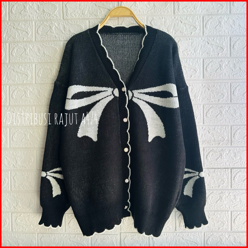 Ribbon Cardigan Rajut Premium Motif Pita Wanita Oversize