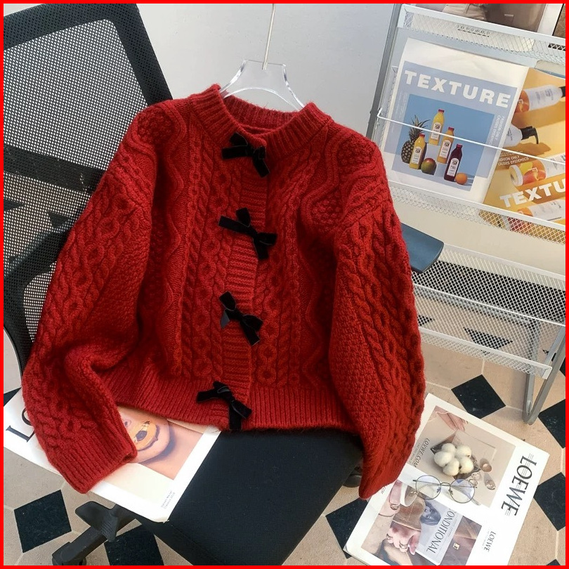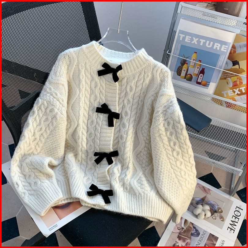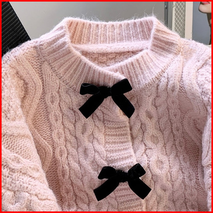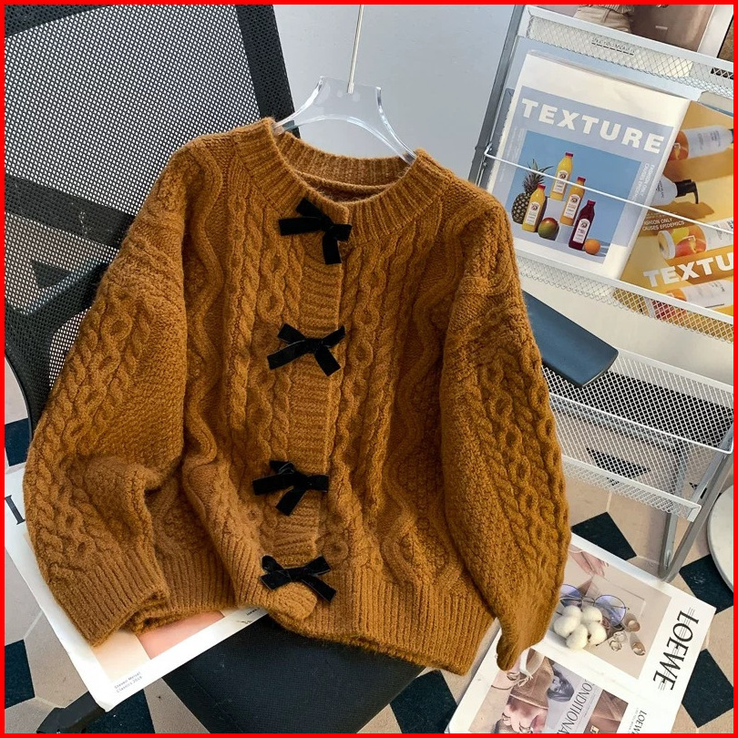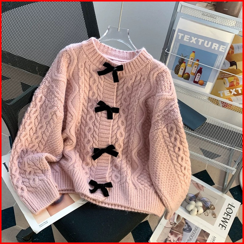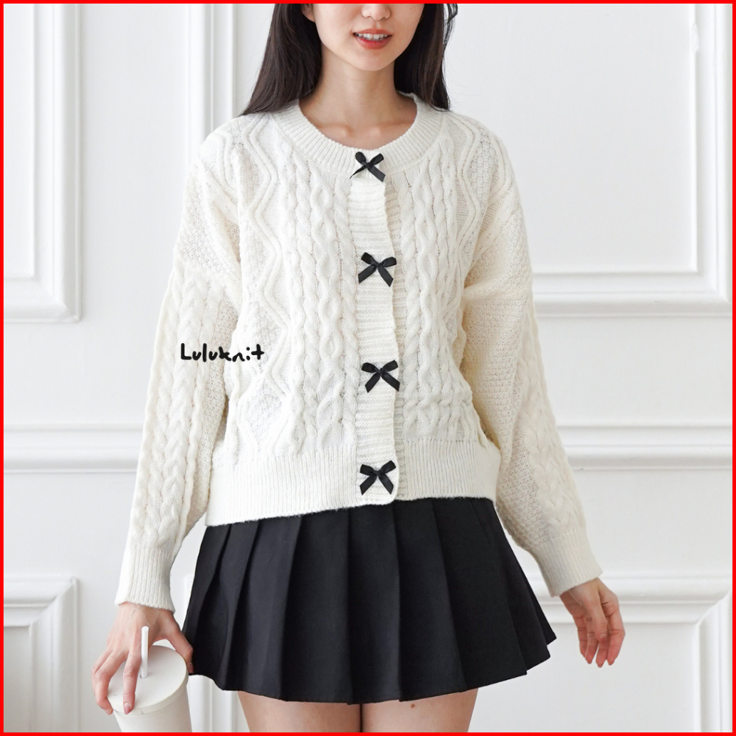 Lulu - Cardigan Outer Rajut Knit Motif Ribbon Pita Lengan Panjang 6688m