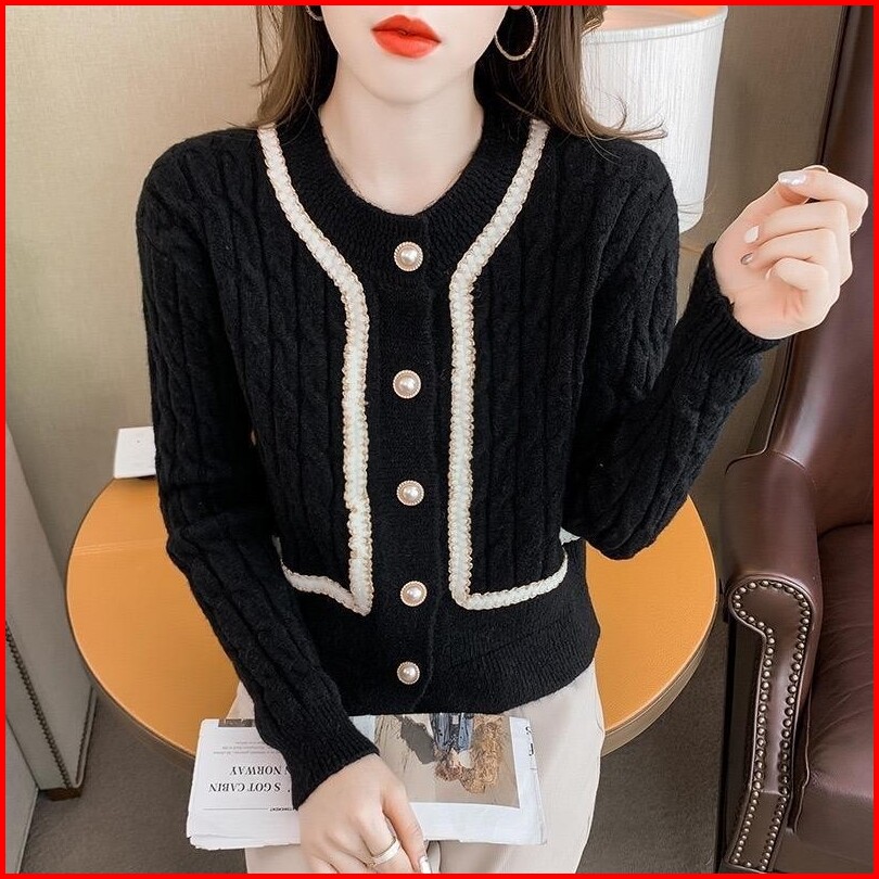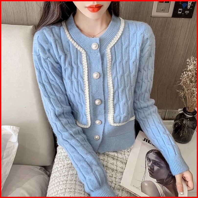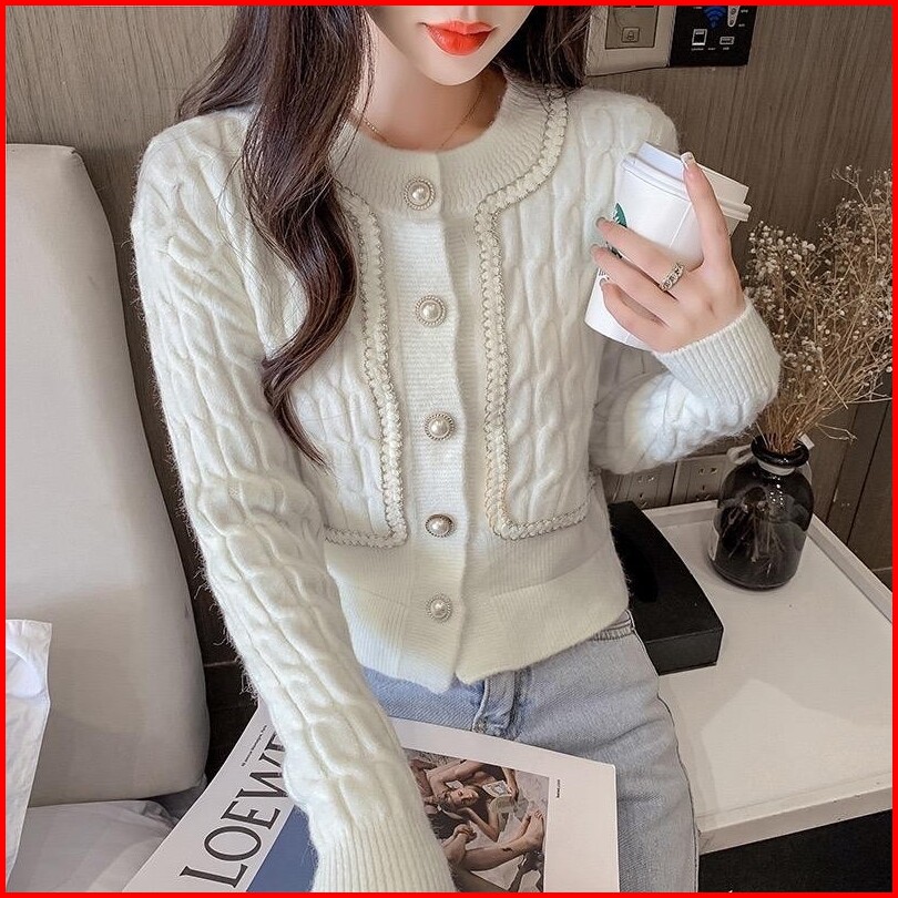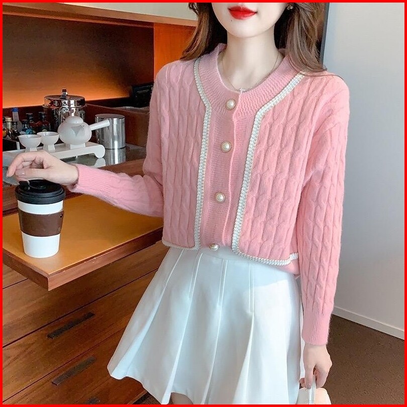 Tortton Cardigan Rajut Wol Korean Style Full Mutiara