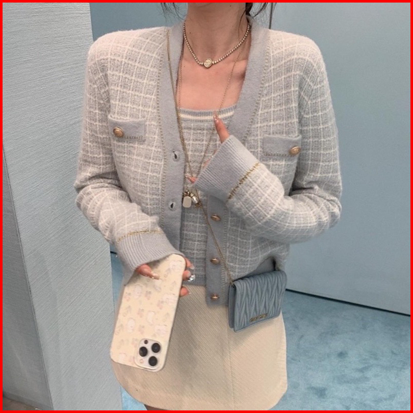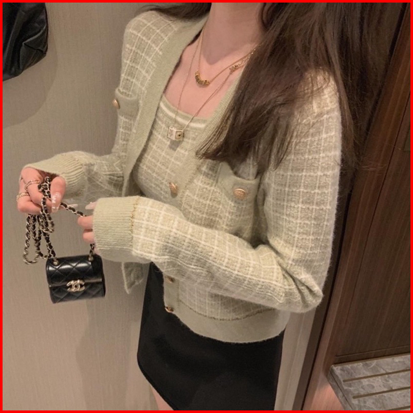 Rosella Cardigan Knit Import Wanita Knitwear Set-cardigan Vest Cardigan Crop Pink Biru Hijau Hitam
