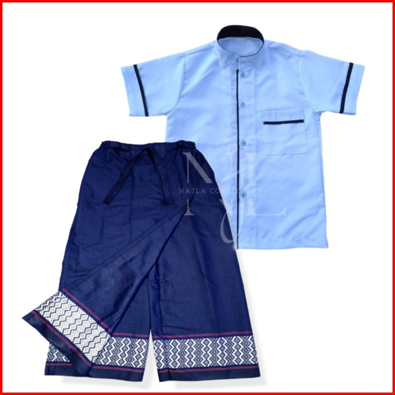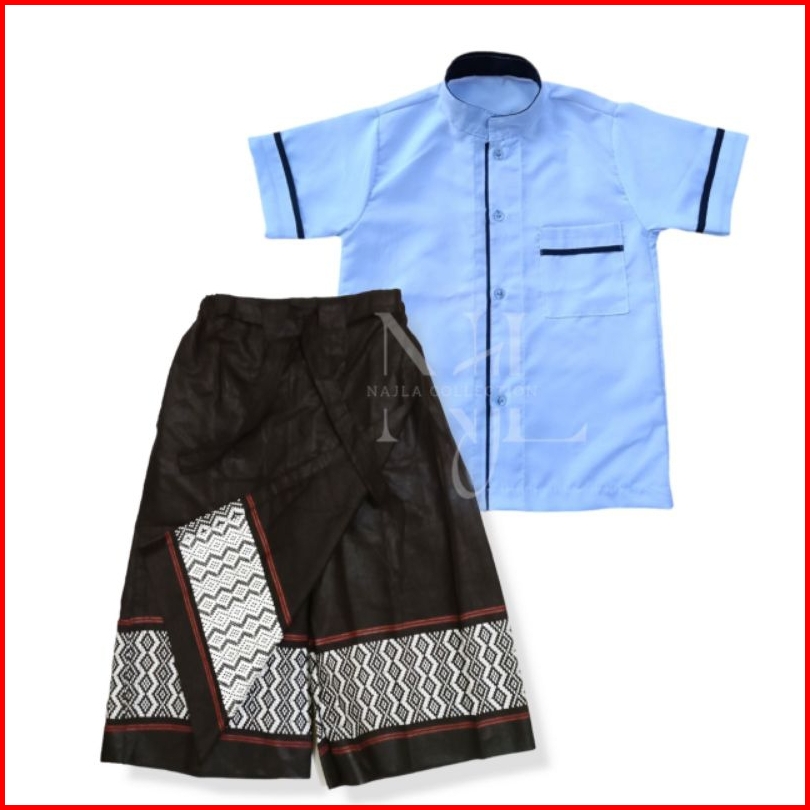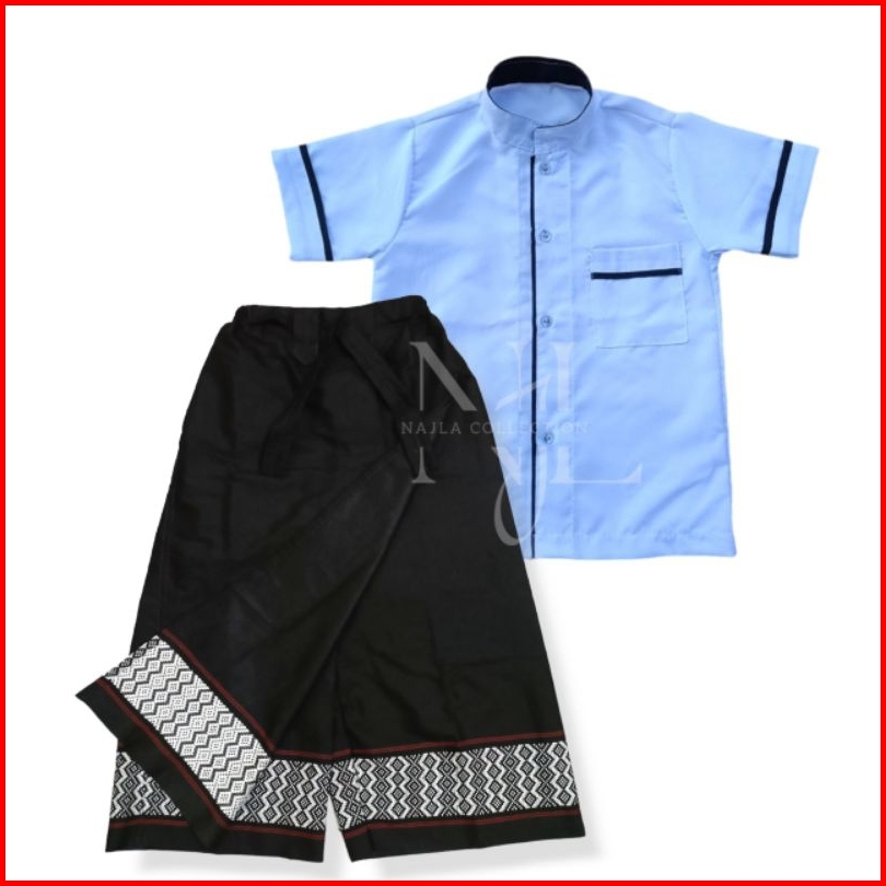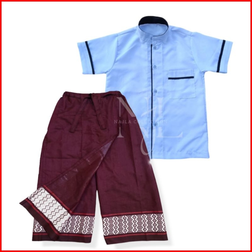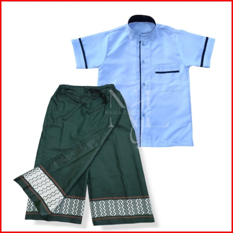 Baju Koko Muslim Anak Laki-laki Setelan Sarung Celana Dan Koko Putih Variasi List