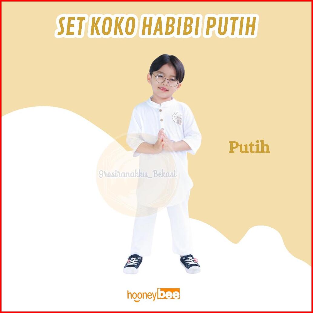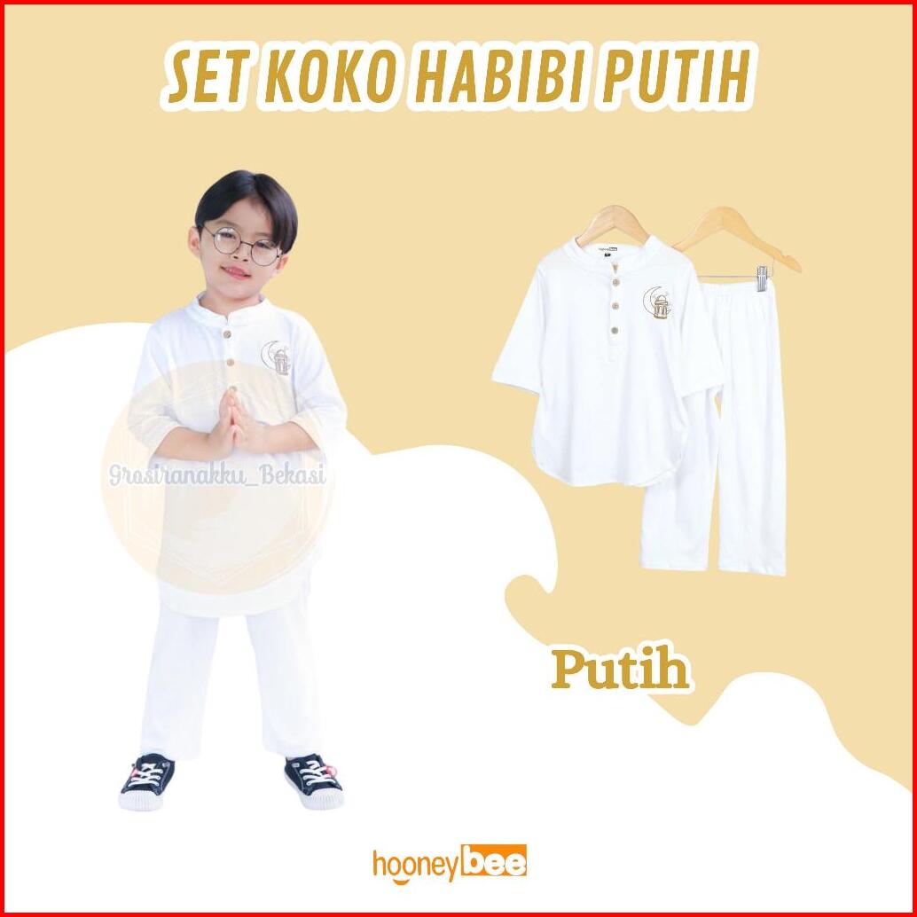 Setelan Koko Anak Habibi Junior Hooneybee Warna Putih Size 2-10 Tahun