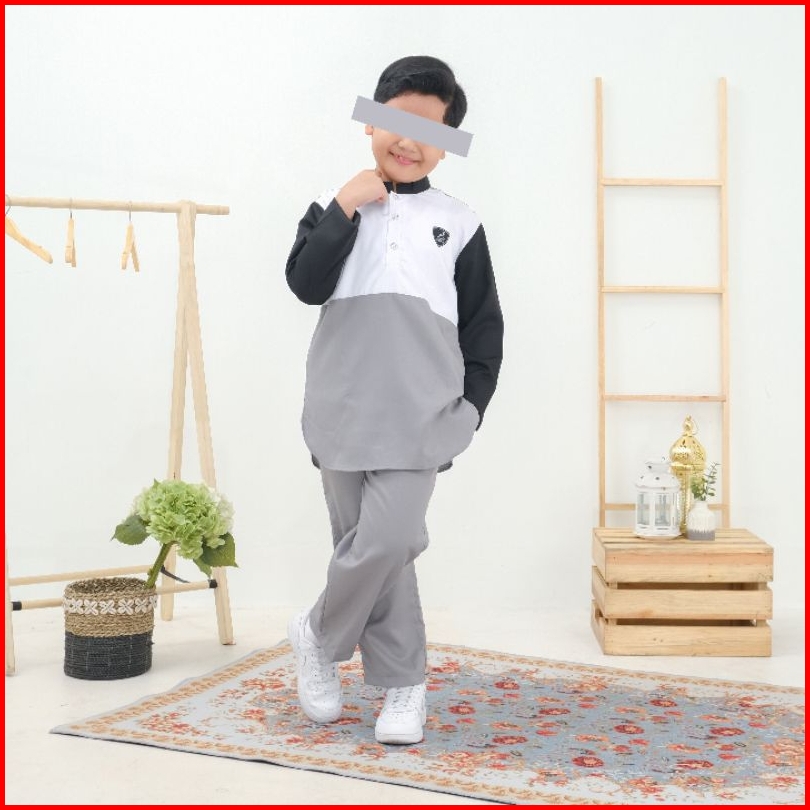 Koko Kurta Anak Setelan Lengan Panjang Usia 4-11 Tahun Bahan Toyobo Raffan