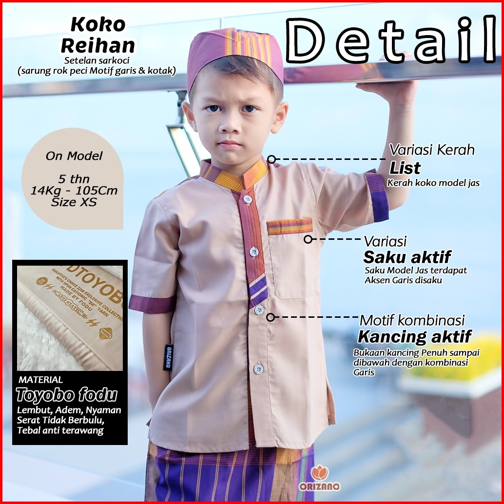 Orizano Koko Reihan - Baju Koko Anak Laki Laki Muslim Setelan Ngaji Bawahan Sarung Reihan