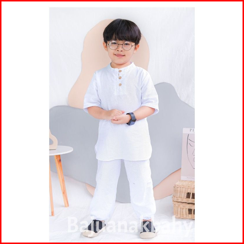 Setelan Koko Adam Putih Manasik Haji Anak Lucuna Size 1-5thn