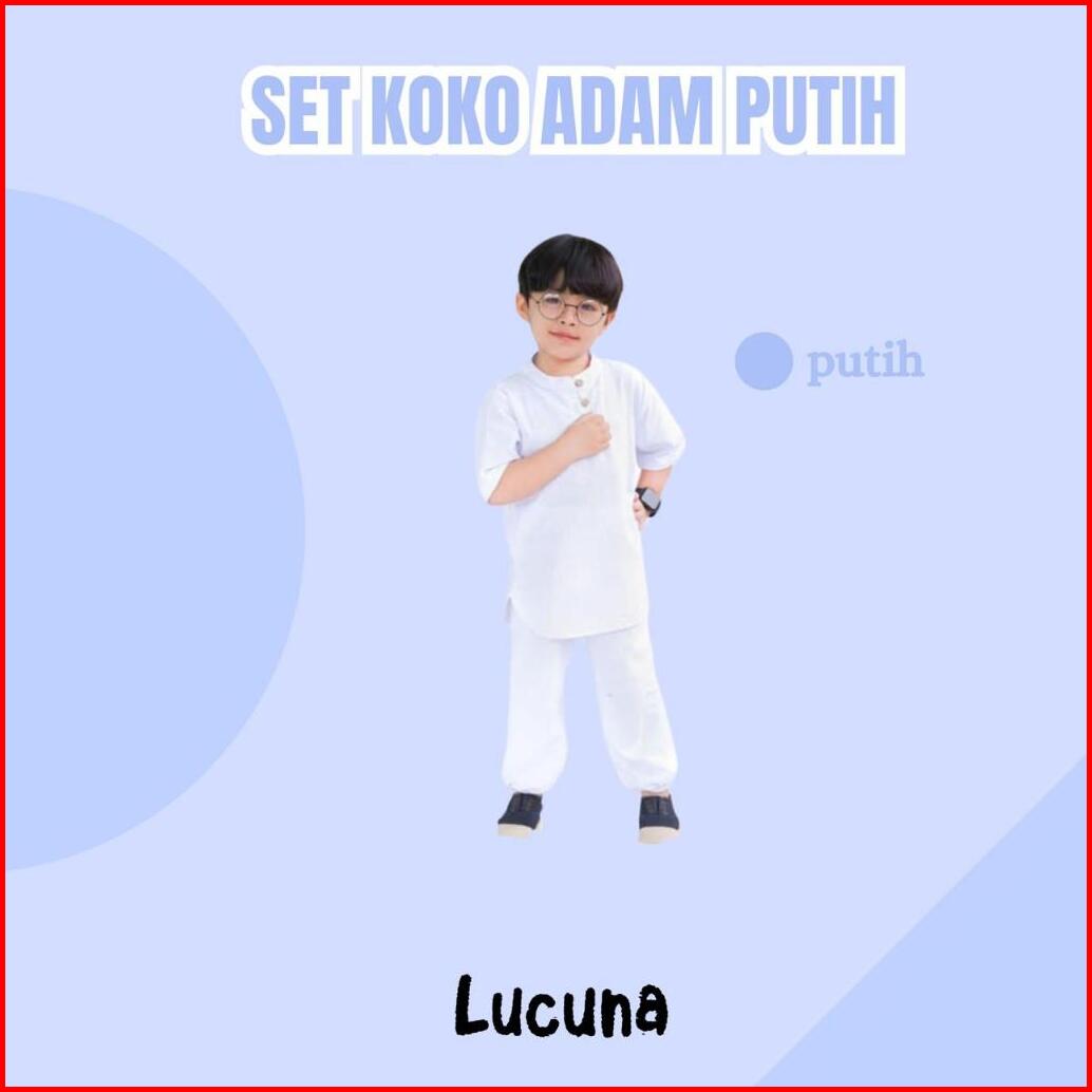 Setelan Koko Adam Putih Manasik Haji Anak Lucuna Size 1-5tahun