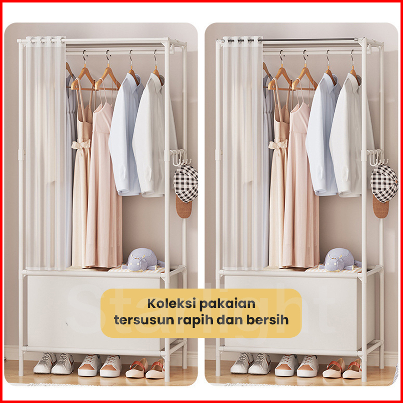 Starlight Rak Baju Serbaguna Lemari Pakaian Tirai Stand Hanger Kotak Gantungan Baju Keranjang Tempat Penyimpanan Baju Se