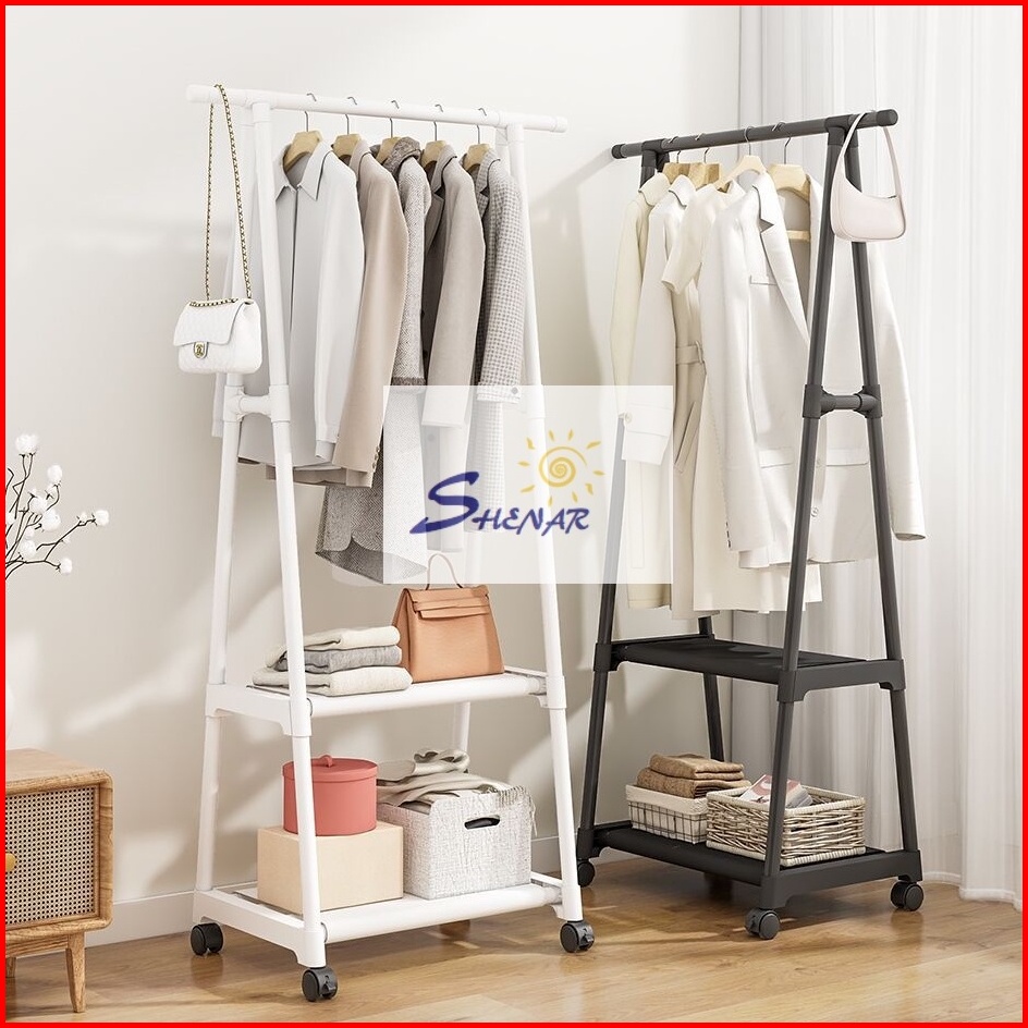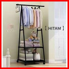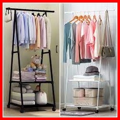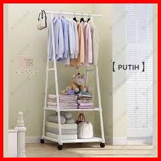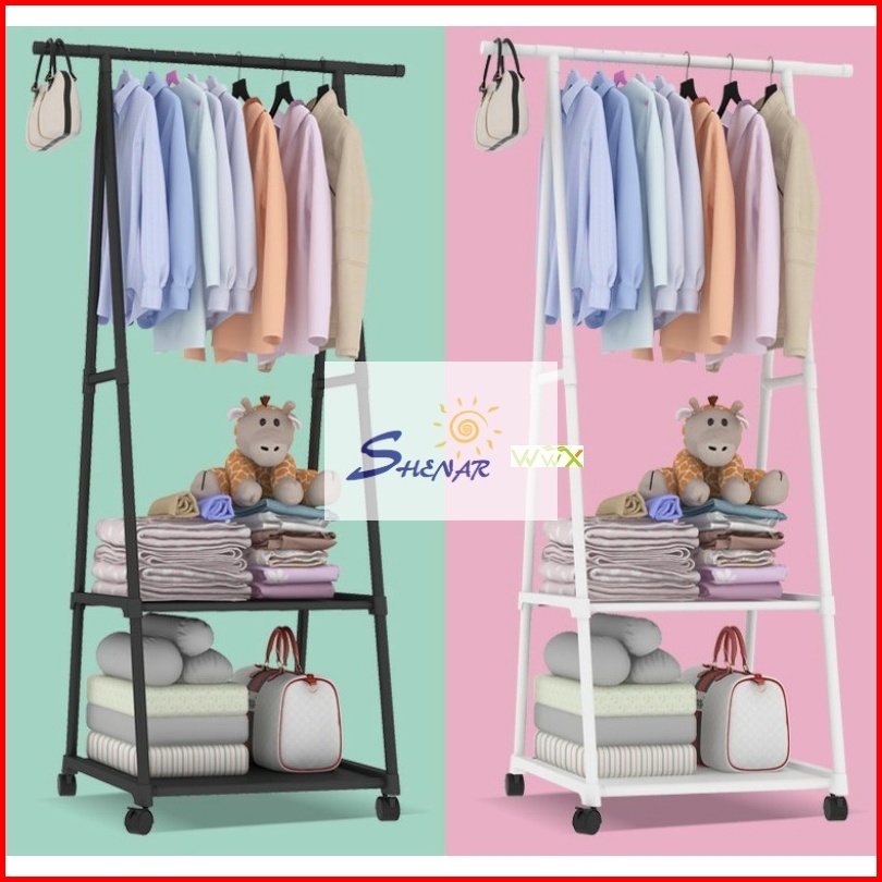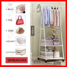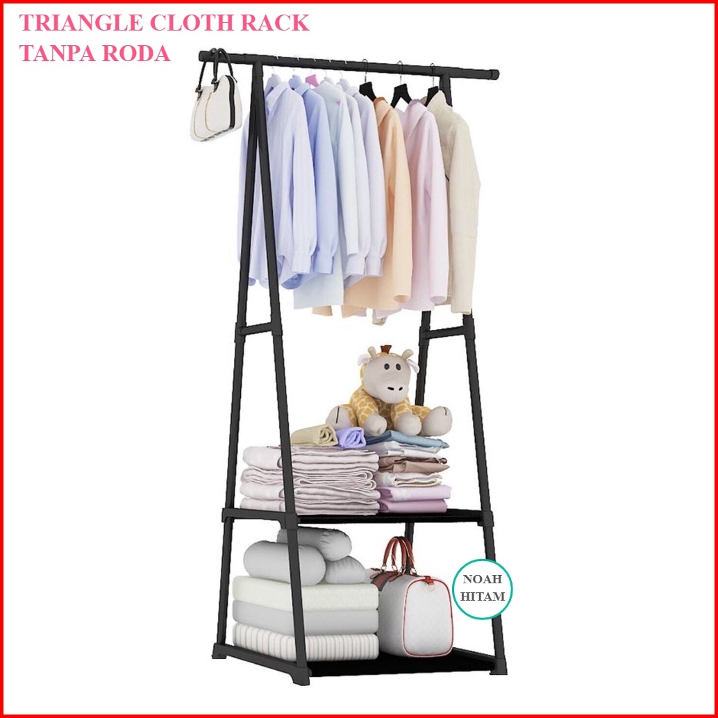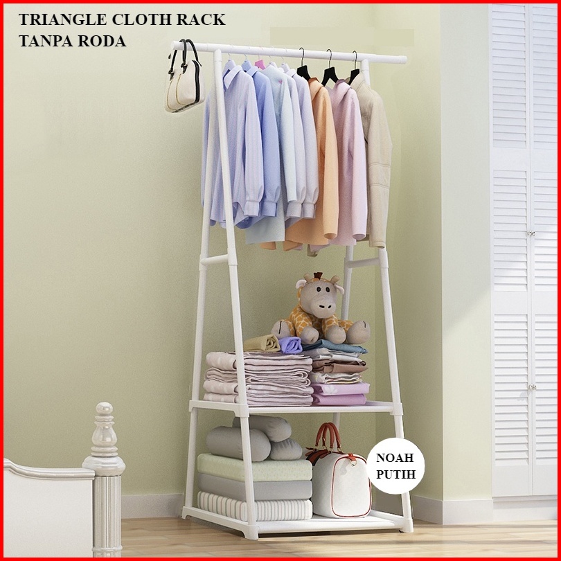Murah Triangle Stand Hanger Rak Hanger Baju Serbaguna Dengan Roda - White Black Merk Shenar