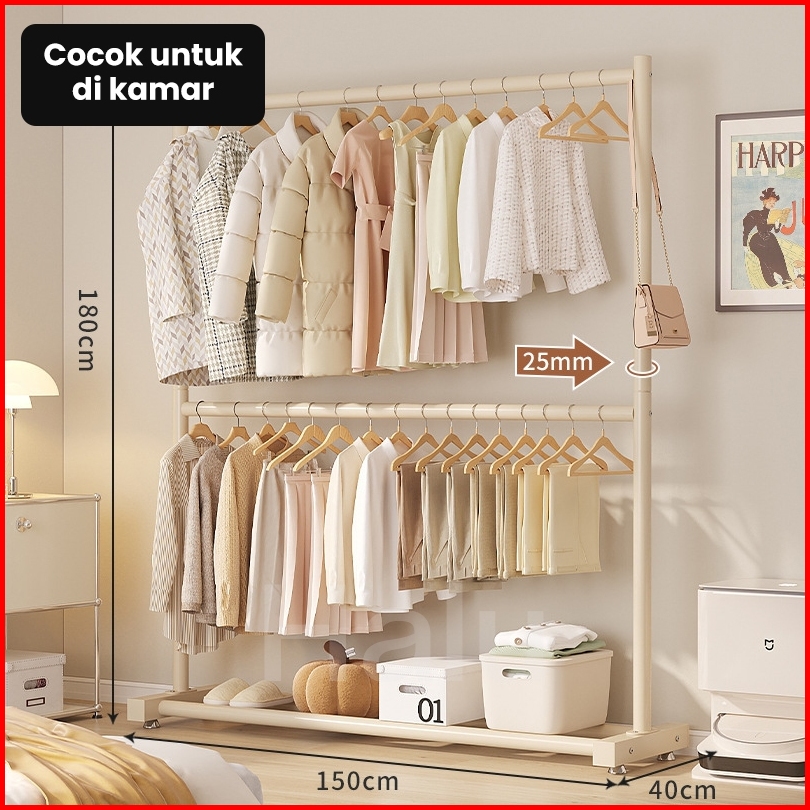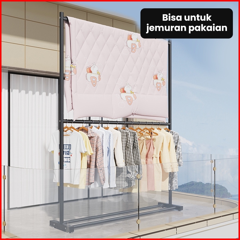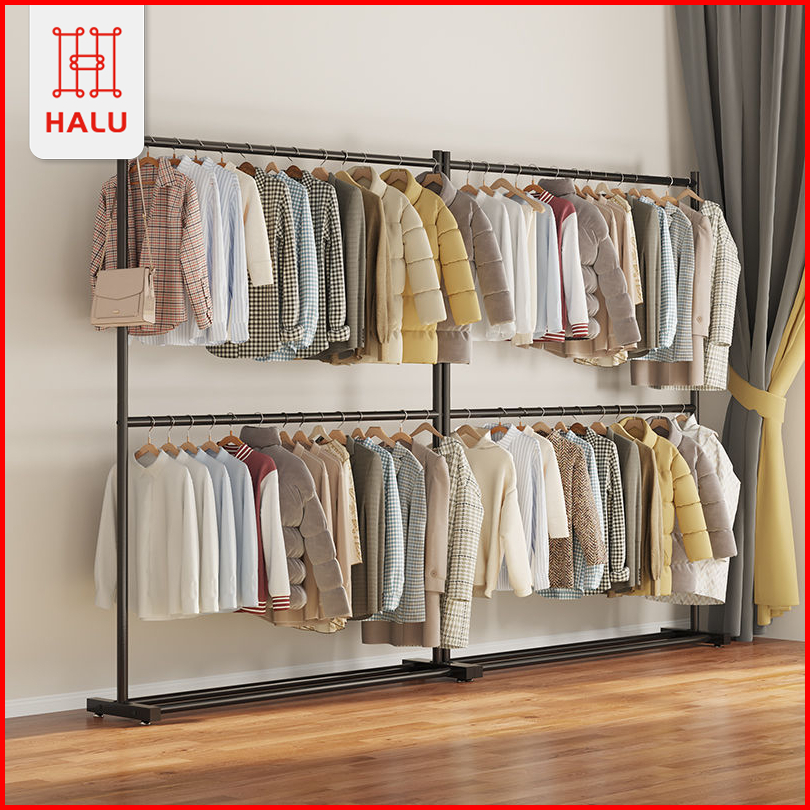 Halu Rak Gantungan Baju Besi Stand Hanger Double 2 Tingkat Jemuran Pakaian Portable Rak Baju Hsh136