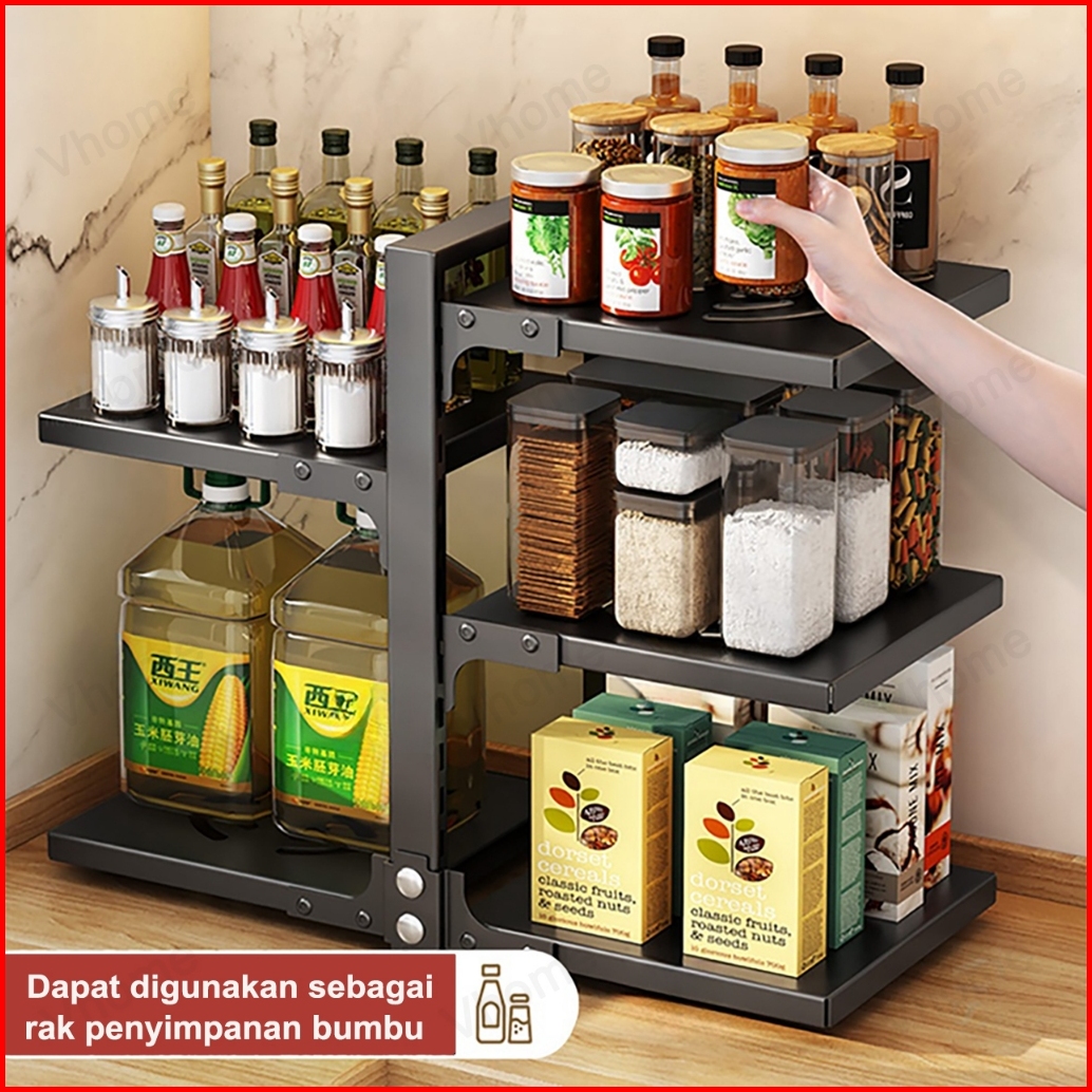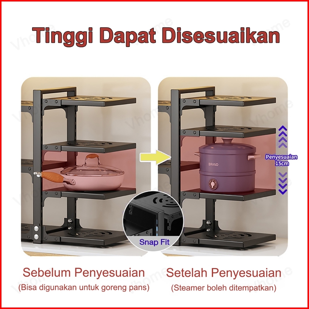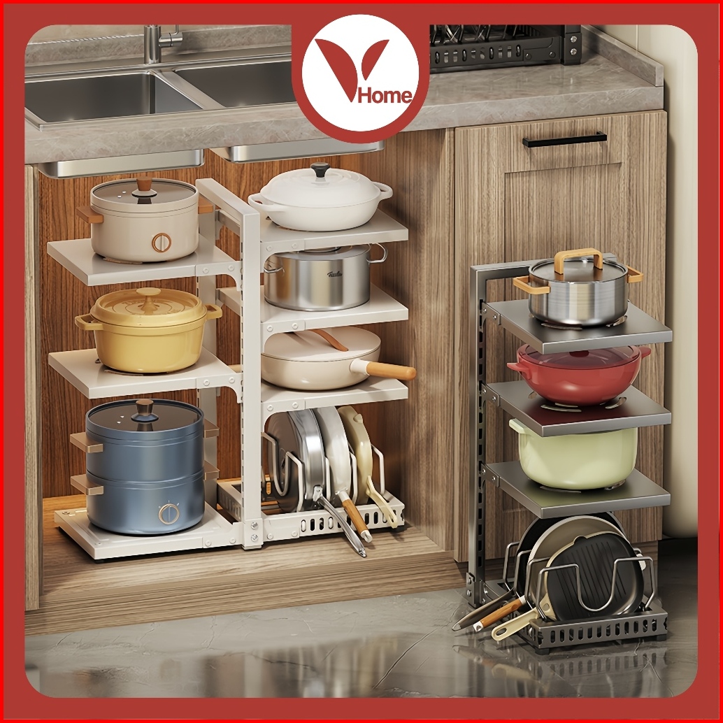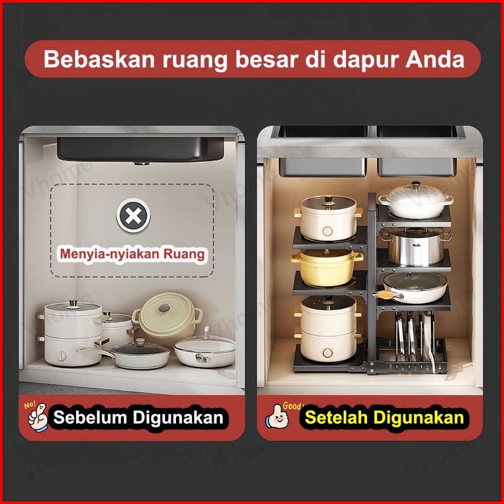 Vhome Rak Pot Dapur Di Bawah Dapur Susun Rak Panci Susun Rak Bawah Wastafel Rak Dapur Stainless Steel
