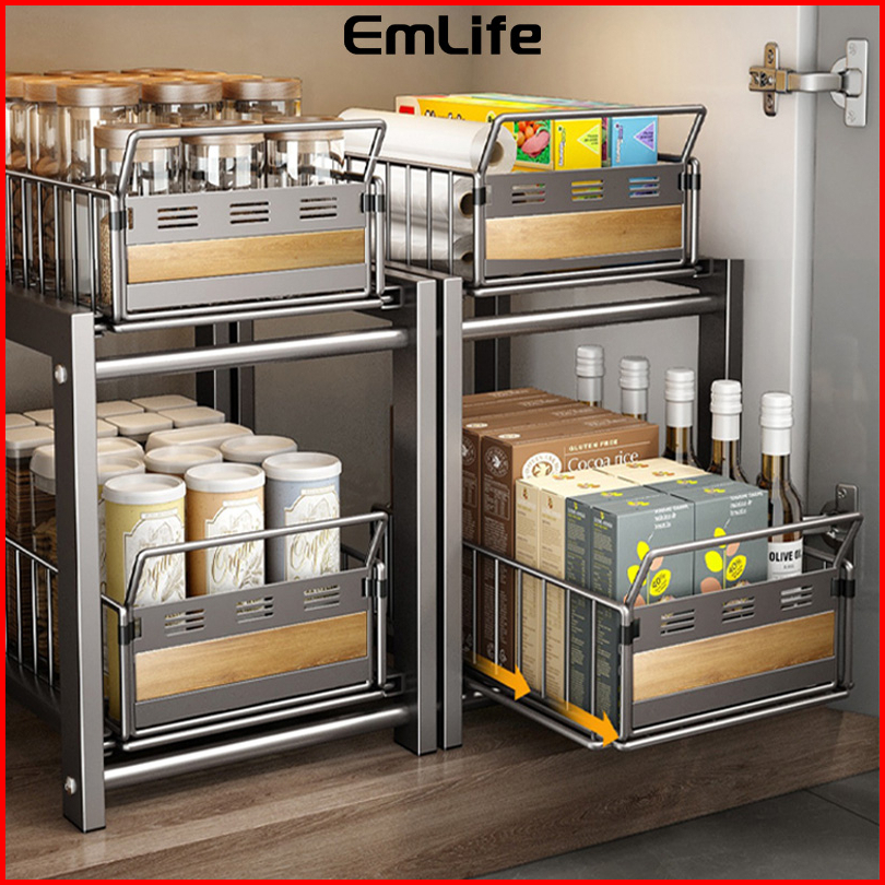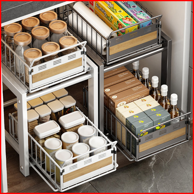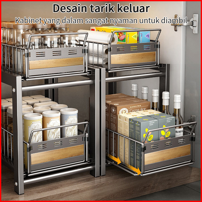 Rak Dapur Bawah Wastafel Rak Kabinet Lemari Dapur Keranjang Geser Laci Rak Tarik Rak
