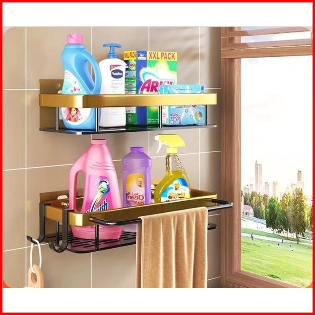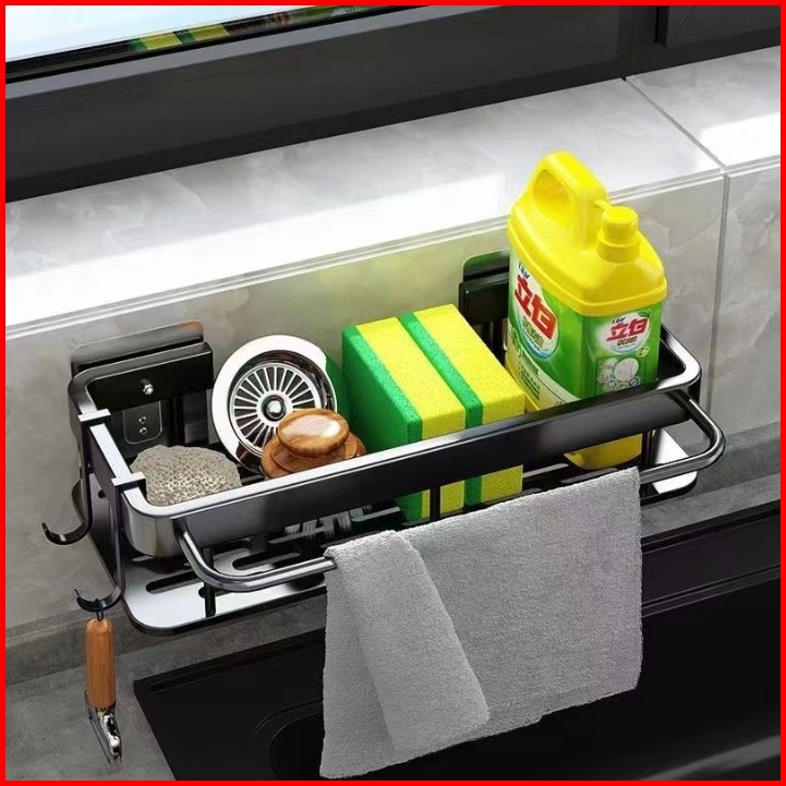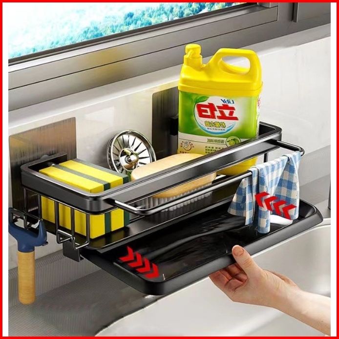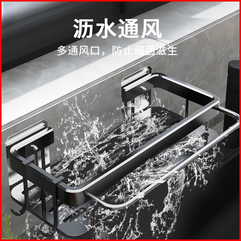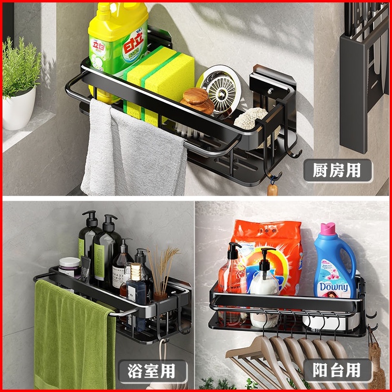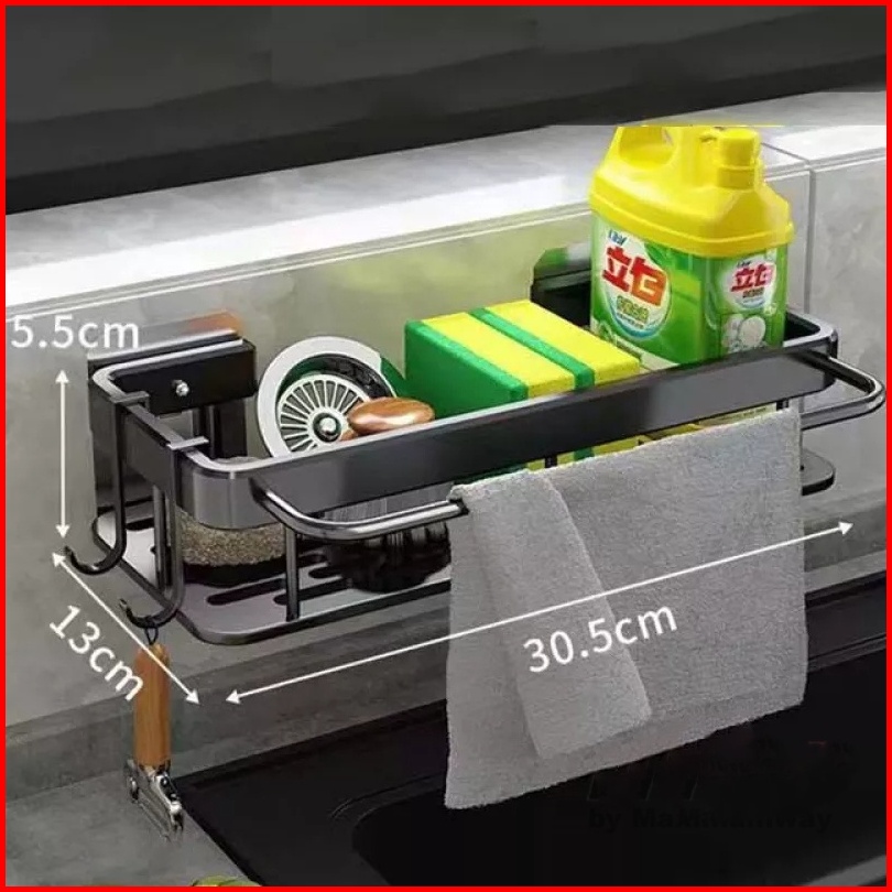 Rak Dapur Rak Dinding Serbaguna Dapur Sink Bak Cuci Piring Wastafel Kamar Mandi Tempel Besi Aluminium Hitam Anti Air Dan