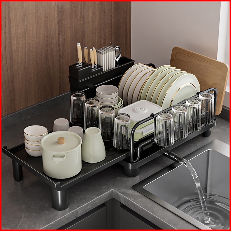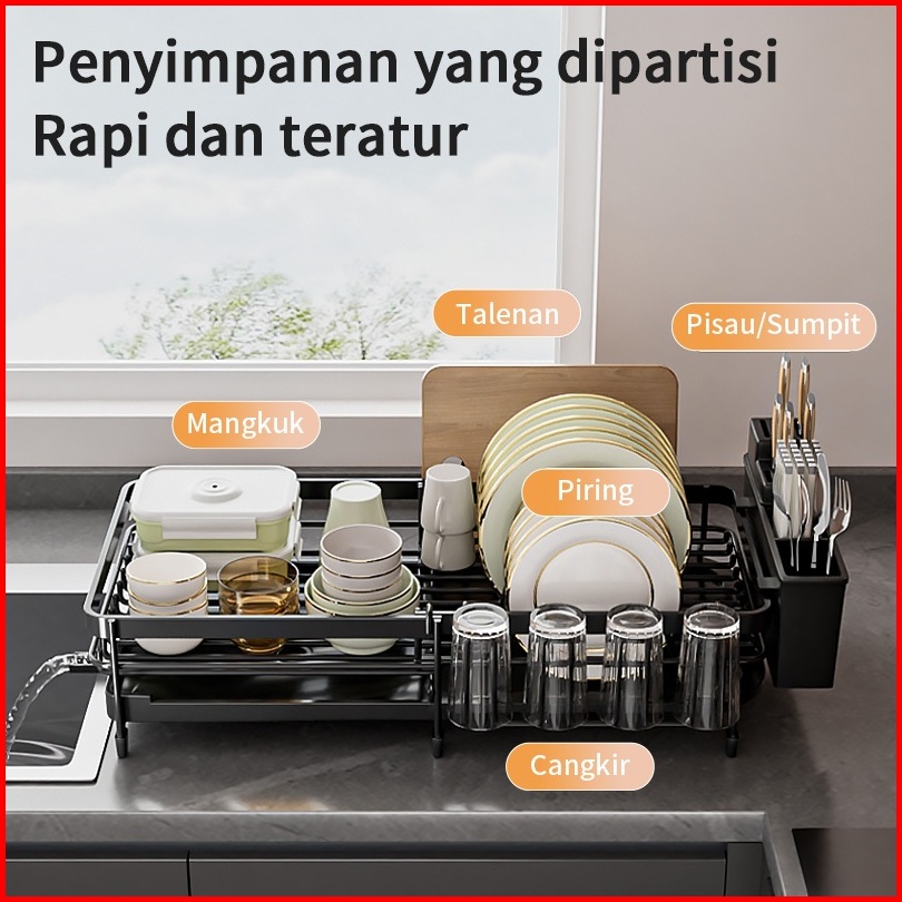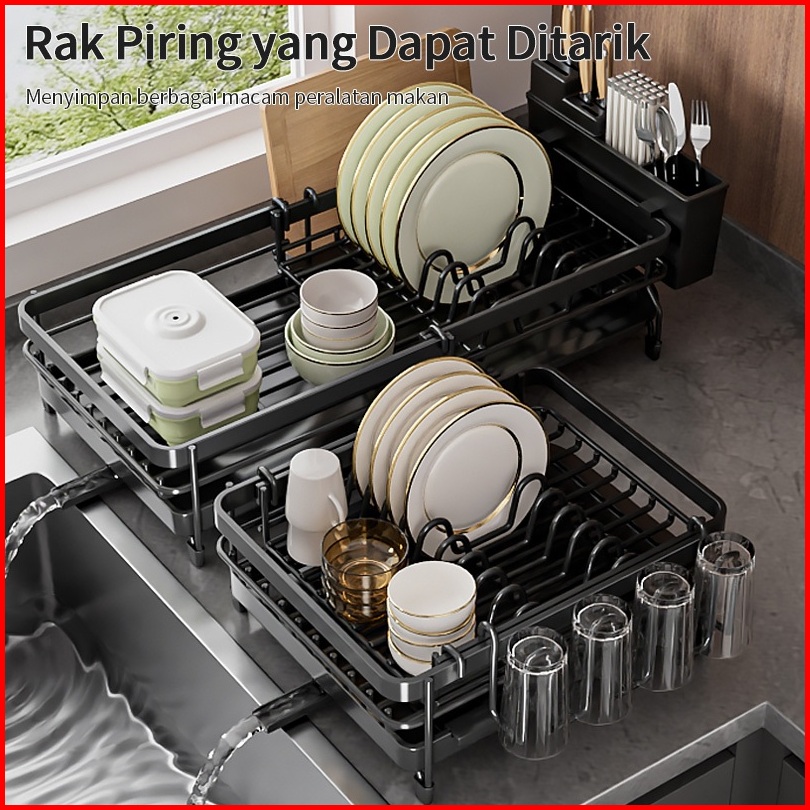 Rak Penyimpanan Peralatan Makan Wastafel Saluran Air Dapur Dapat Ditarik Pisau Piring Lengket Garpu Rak Penyimpanan Cang