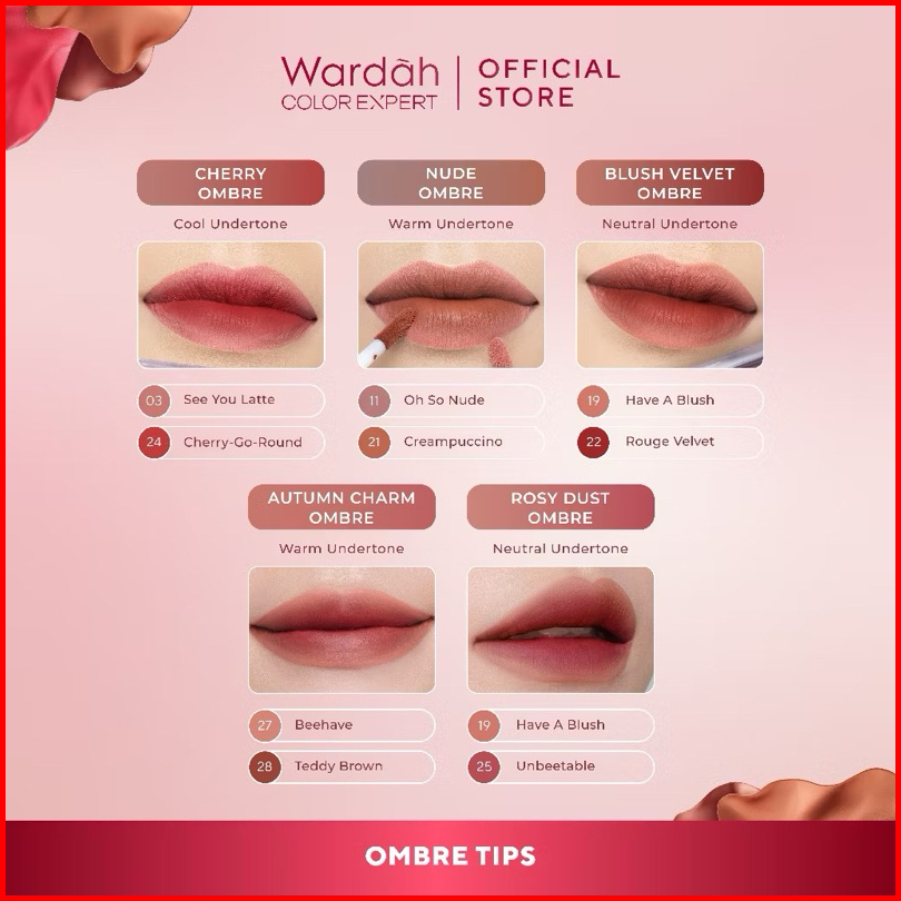 01 RED DICTED, 03 SEE YOU LATTE, 05 SPEACHLESS, 07 HELLO RUBY, 08 PINK CREDIBLE, 09 MAUVE ON, 12 PLUM IT UP, 13 FRUIT PUNCH, 19 HAVE BLUSH, 20 PEACH OF MIND, 21 CREAMPUCCINO, 22 ROUGE VELVET, 23 ROSE AND SHINE, 24 CHERRY GO ROUND, 25 UNBEETBLE, 26 PINK A BOO, 27 BEEHAVE, 28 TEDDY BROWN