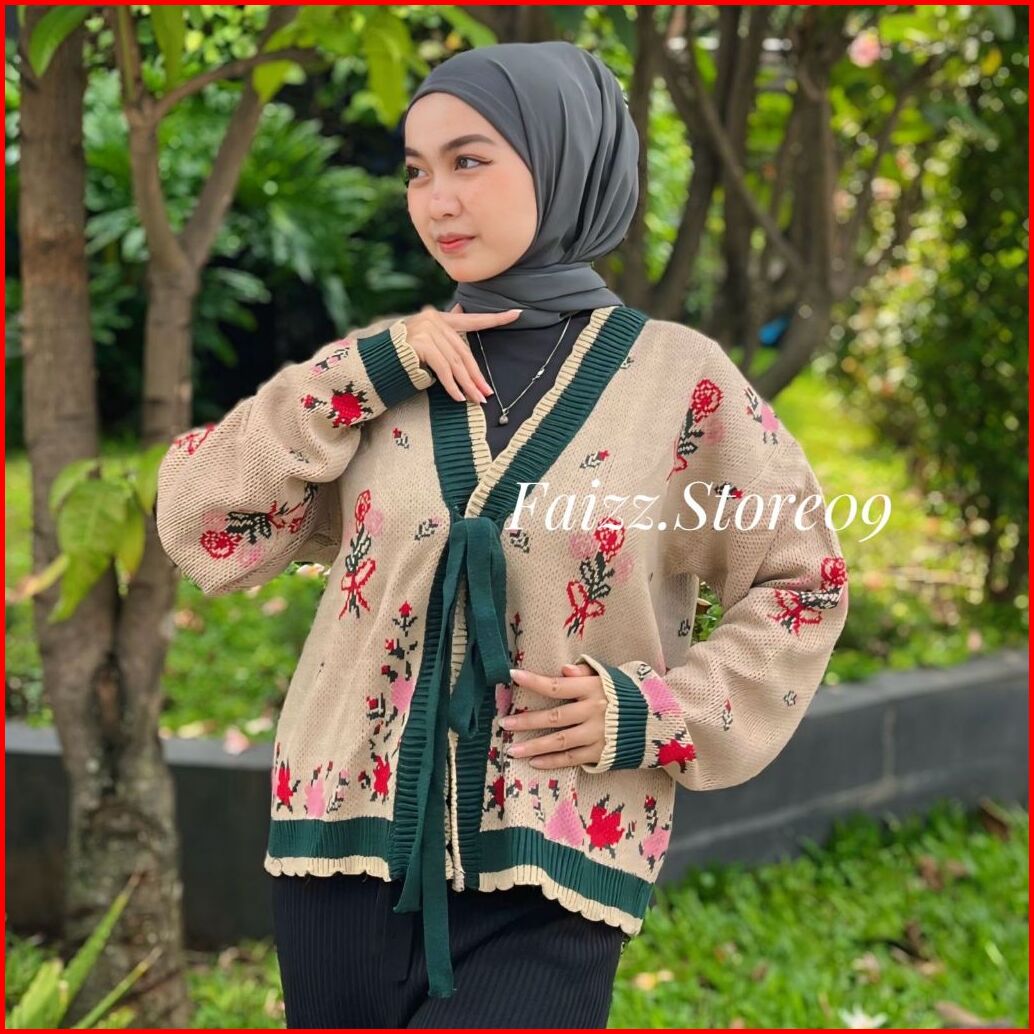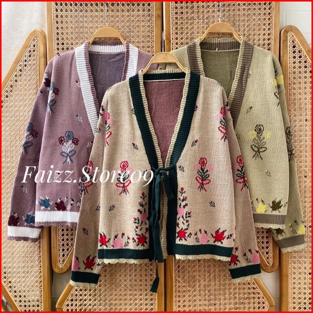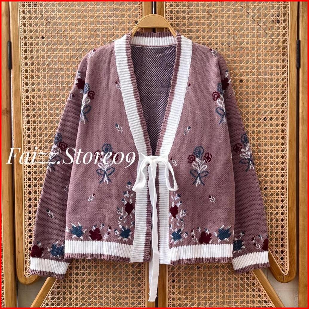 Mosela Knitwear Outer Tali Pita - Atasan Cardigan Rajut Wanita Motif Bunga Korean Style Premium