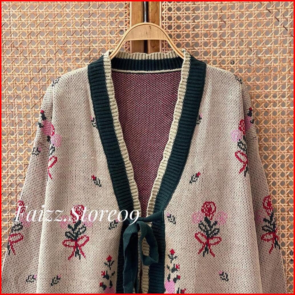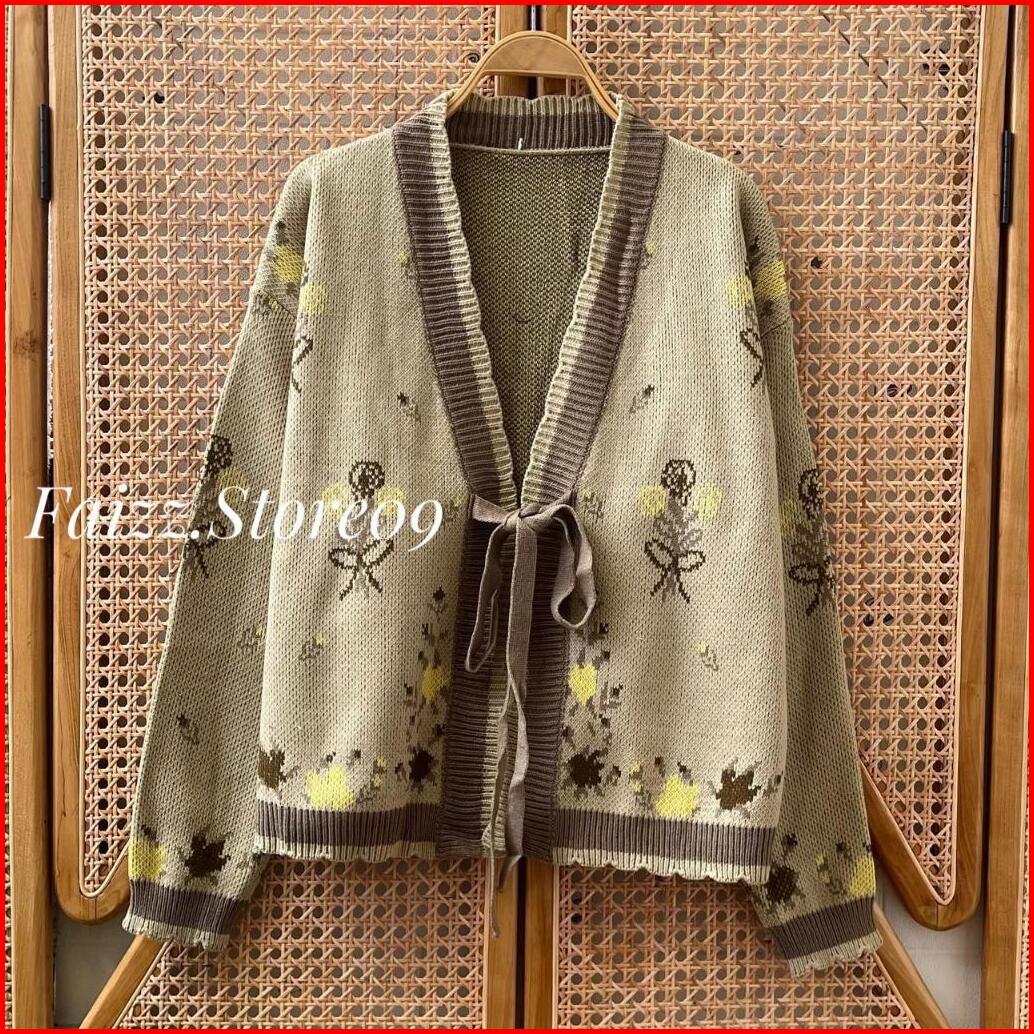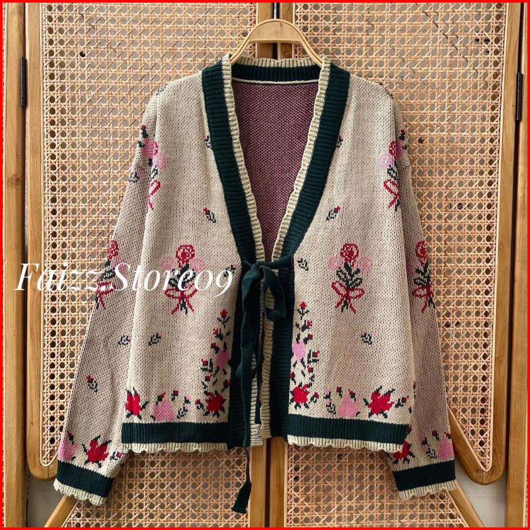Mosela Knitwear Outer Tali Pita - Atasan Cardigan Rajut Wanita Motif Bunga Korean Style Premium